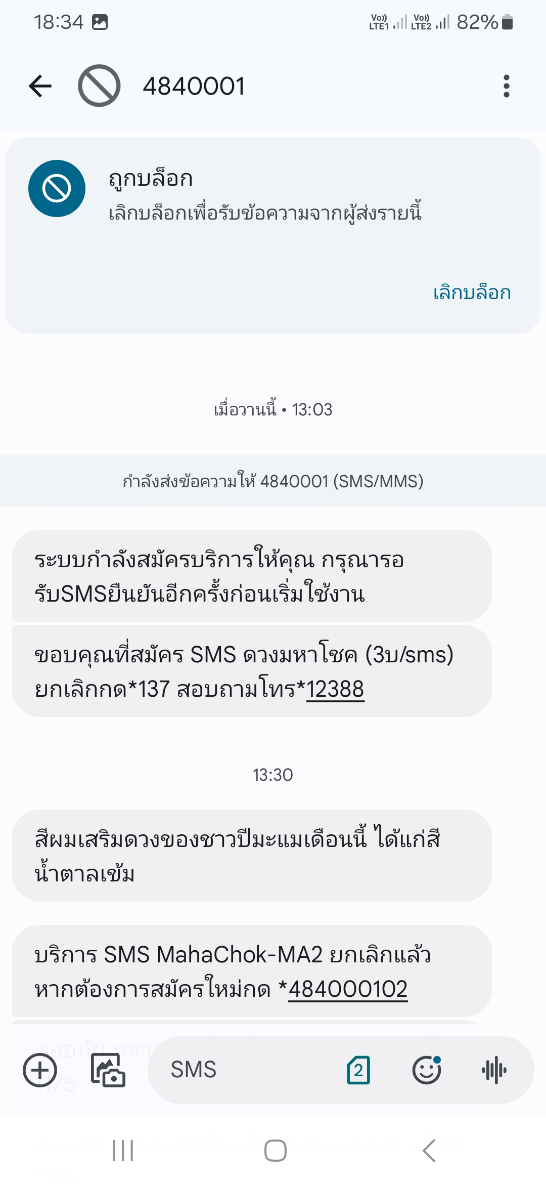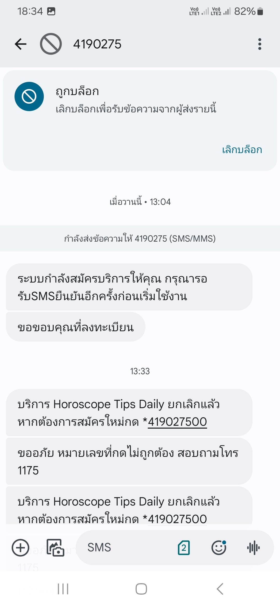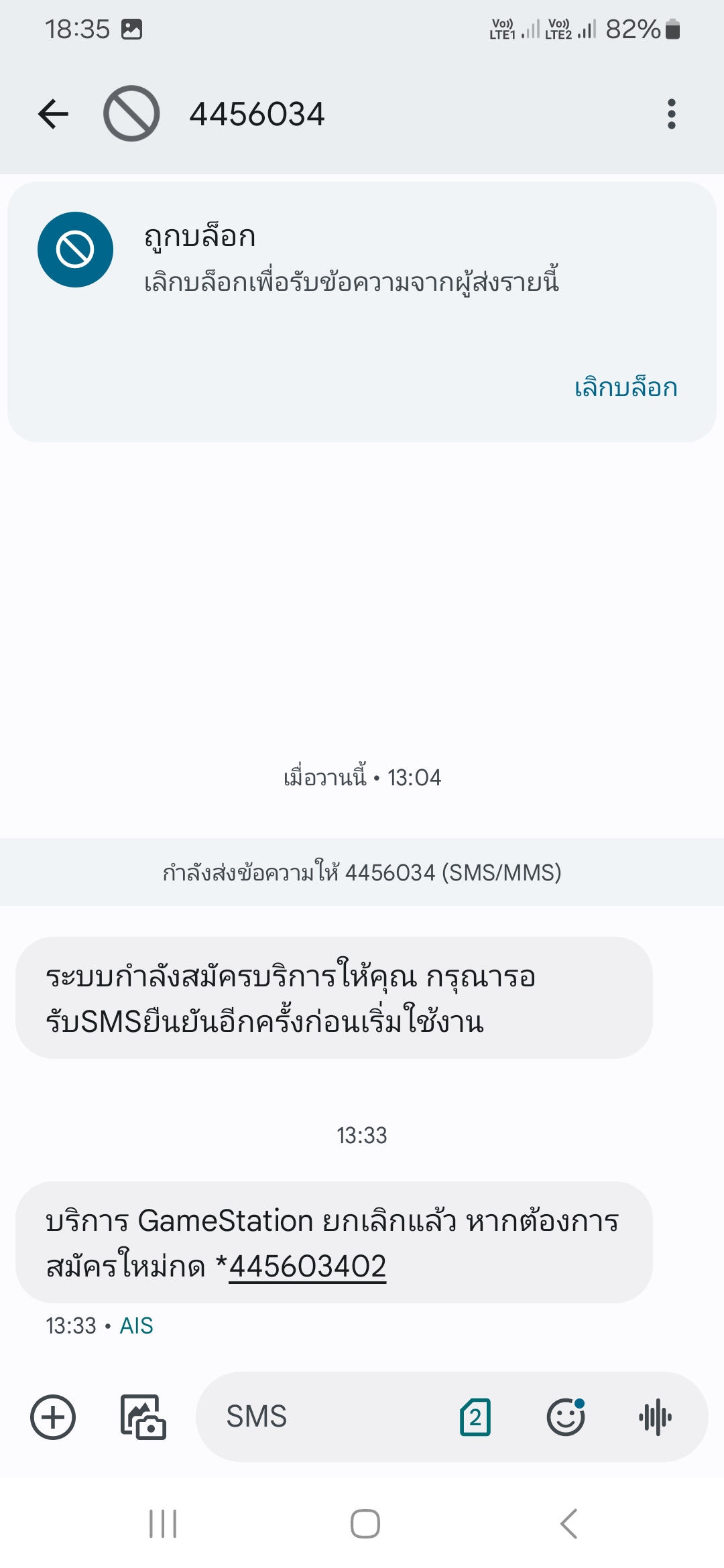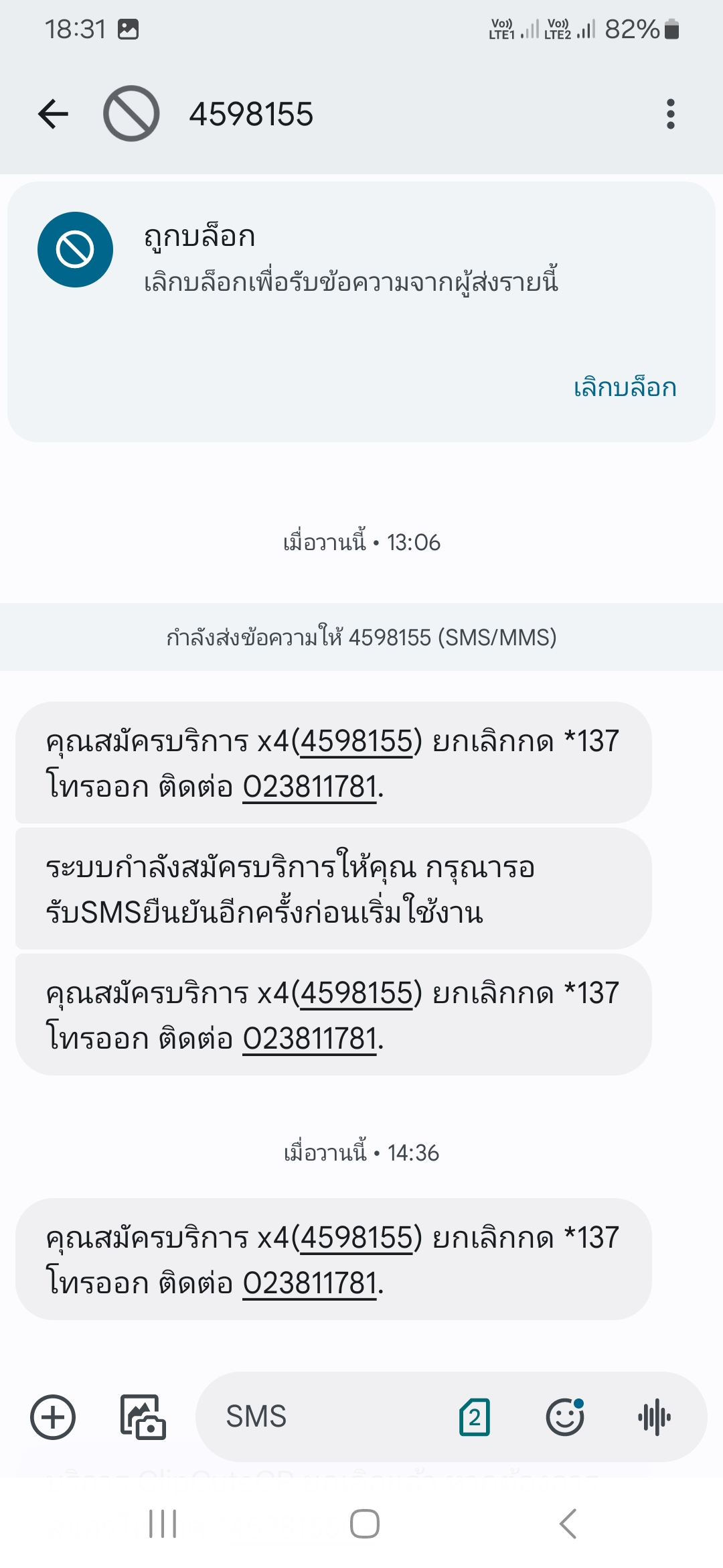 พอดีหลานสาวเผลอกดลิ้งก์แปลกๆครั้งนึงแล้วมันส่งข้อความมาไม่หยุดเลยค่ะตอนแรกกดยกเลิก sms ไปแล้วแต่รู้สึกเหมือนมันยังกินตังค์อยู่วันนี้เลยทำอีกรอบแต่ปรากฏว่าขึ้นตามภาพค่ะ Ais ช่วยเอามันหายไปเลยได้ไ