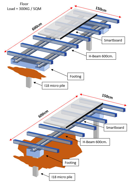 พื้นโครงเหล็กกว้าง 1.5 ยาว 5 เมตร รับโหลดไม่เยอะ ลงไมโครไพล์ 2 ต้น หัวท้าย