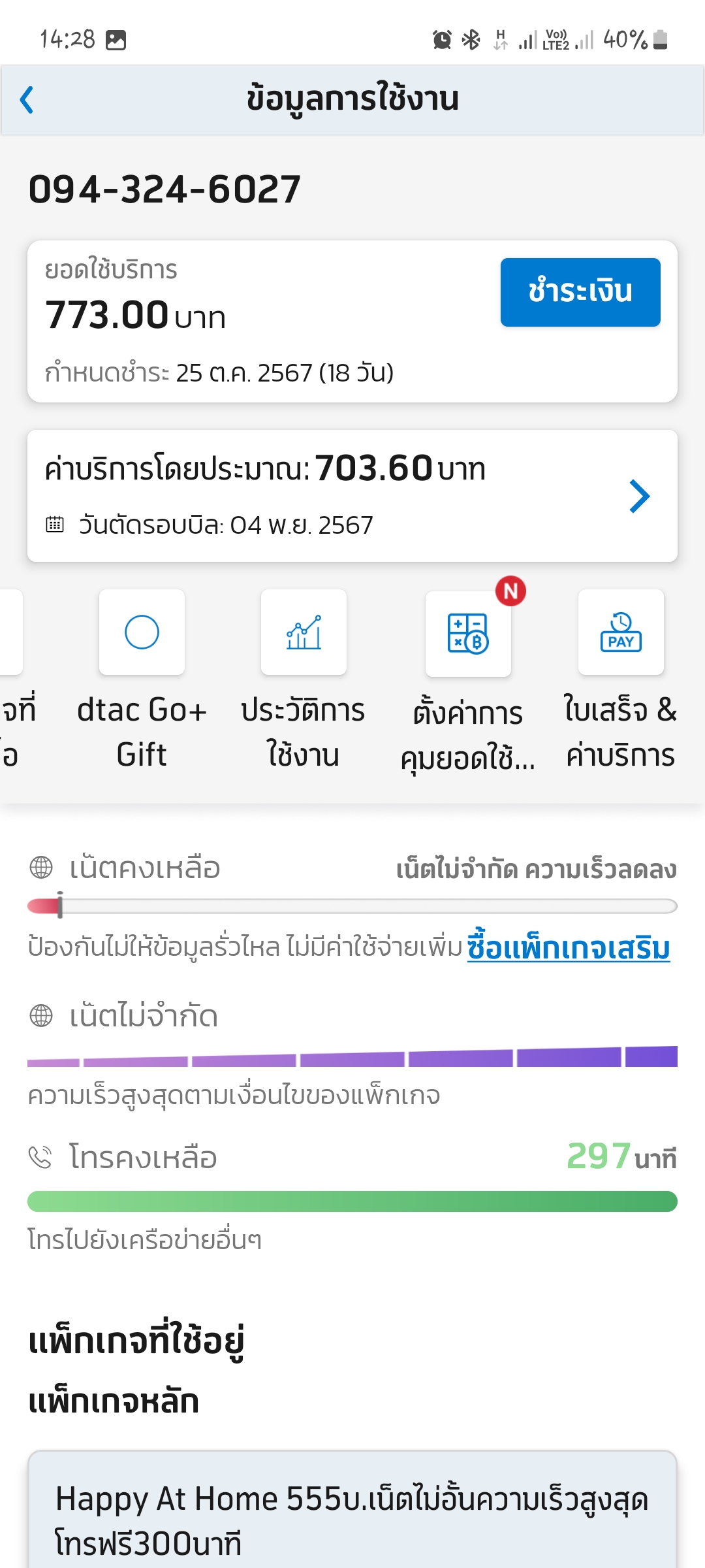 ค้างชำระรายเดือนดีแทค 3 เดือน เพิ่งจ่ายไป 2 เดือน เล่นเน็ตได้7 วันตัดสัญญาณแล้ว