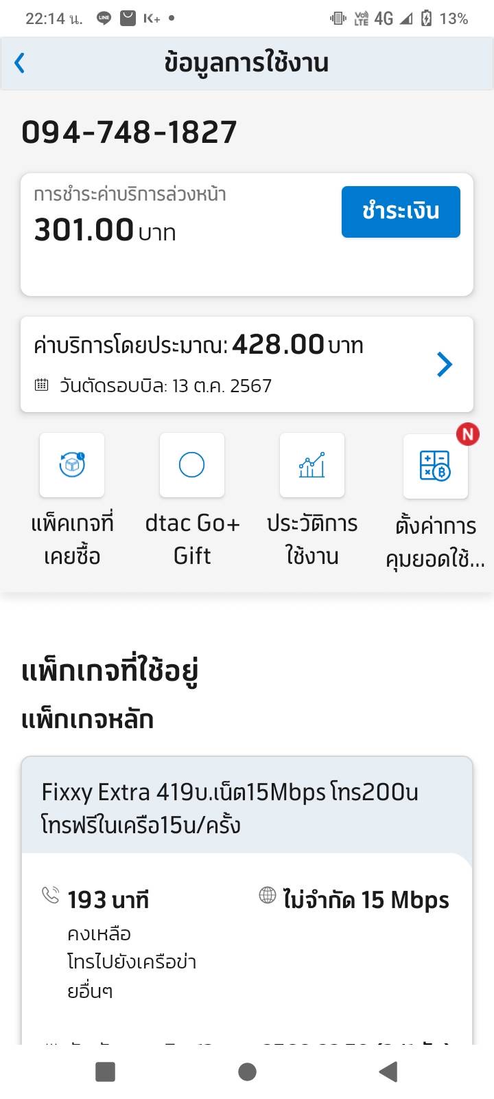 ปกติสมัครดีแทครายเดือน599 จ่ายจริง640 บิลรอบเดือนกันยา-ตุลา จู่ๆพุ่งขึ้นมาที่1685 บาท เราเลยเช็คที่แอพดีแทค ไม่ขึ้นว่าค่าอะไรที่เกินมา เลยไปที่ศูนย์ในห้าง แทบไม่เชื่อ พนักงานบอกว่าบิลเพิ่งออก ยังไม่ท