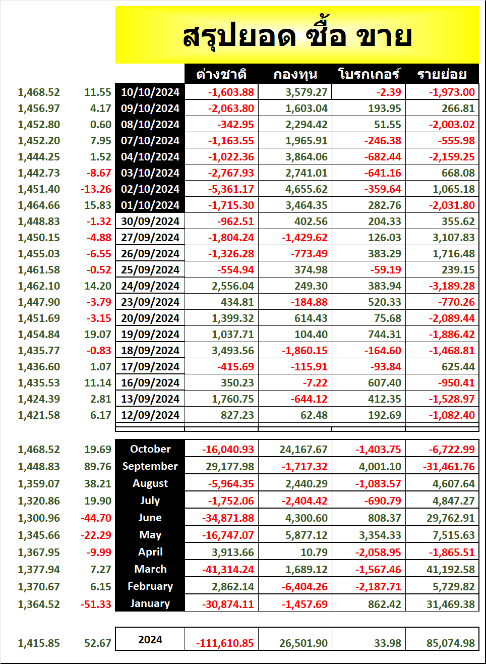 10 เดือน 10 ต่างชาติ 🔴 ขาย 12 วันติด อีก -1,603.88 ล้านบาท