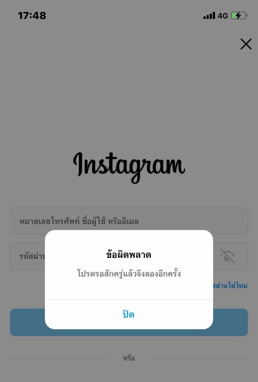 สอบถามหน่อยค่า เข้าระบบไอจีไม่ได้ คือใส่รหัสครบทุกอย่างพอกดเข้าสู่ระบบ ไอจีขึ้นว่า เกิดข้อผิดพลาด ขออภัยเกิดข้อผิดพลาดขึ้น โปรดลองอีกครั้งเป็นมา 2 เดือนแล้ว มีใครทราบวิธีเเก้ไขบ้าง