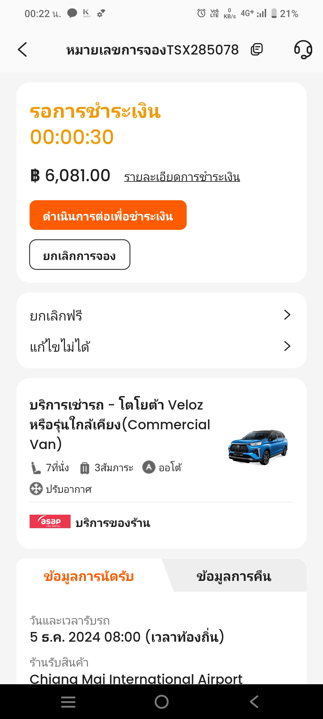 ผ่านไปเกินเวลา 0:22 น. การจองในแอพ klook ของผมเป็นโมฆะเพราะชำระไม่ทัน