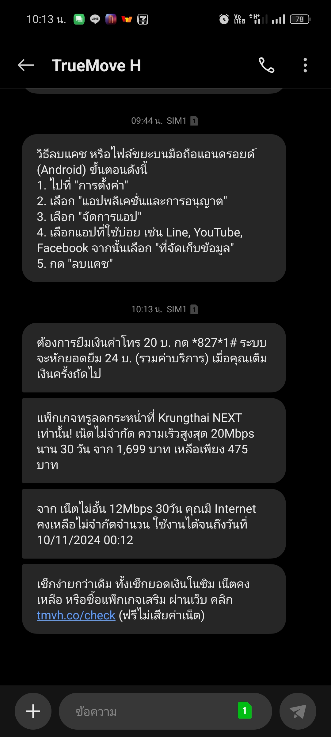 ผมสมัคร เน็ตเมื่อคืนตอนเที่ยงคืนกว่าๆ เกือบ500 บาท เล่นได้ไม่ถึง10 นาที อินเทอร์เน็ต เล่นไม่ได้ สัญญาณก็ขึ้น เต็ม ขึ้น5 G ทำทุกอย่างแล้ว รี สัญญาณ ปิด เปิด เครื่อง ล้าง แคช แต่ก็ ยังเล่นไม่ได้ จนถึง ตอนนี้ โทรไปหา คอลเซ็นเตอร์ทรู คอลเซ็นเตอร์ บอกไม่มีแพ็คเกจ คงเหลือ งง