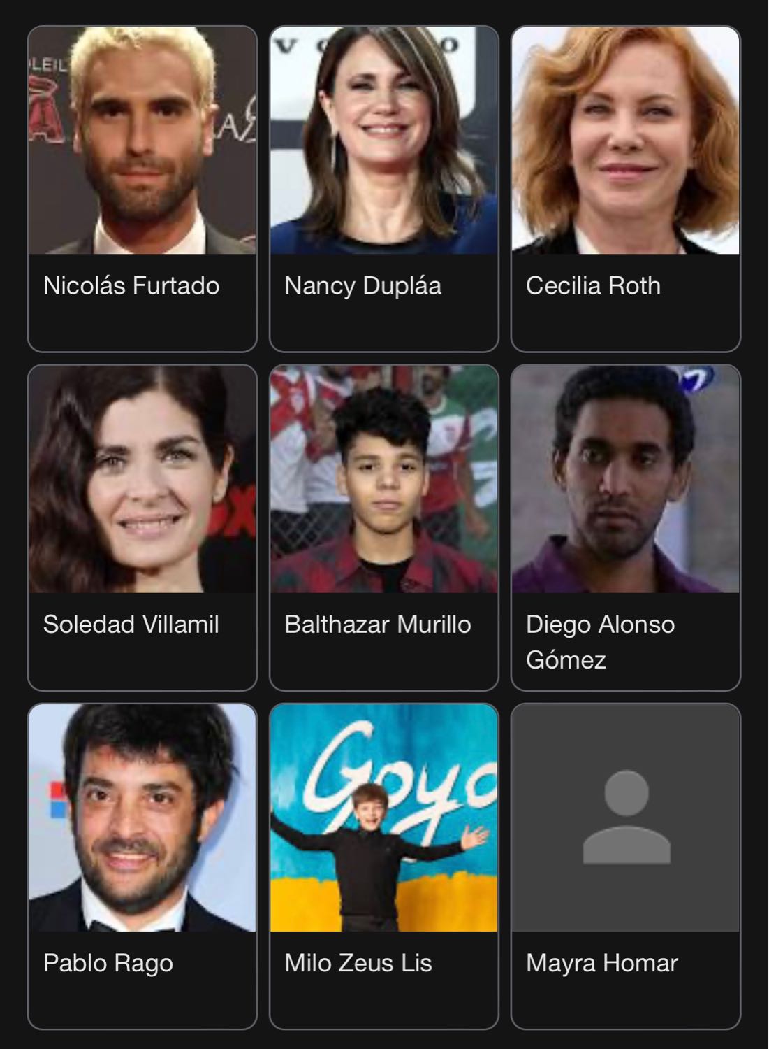 Goyo เป็นภาพยนตร์ดราม่าโรแมนติกสัญชาติอาร์เจนตินา ออกฉายเมื่อเดือนกรกฎาคม 2024 กำกับและเขียนบทโดยมาร์กอส คาร์เนวาล นำแสดงโดยนิโคลัส ฟูร์ตาโด, แนนซี ดูปลา และโซเลดัด บียามิล