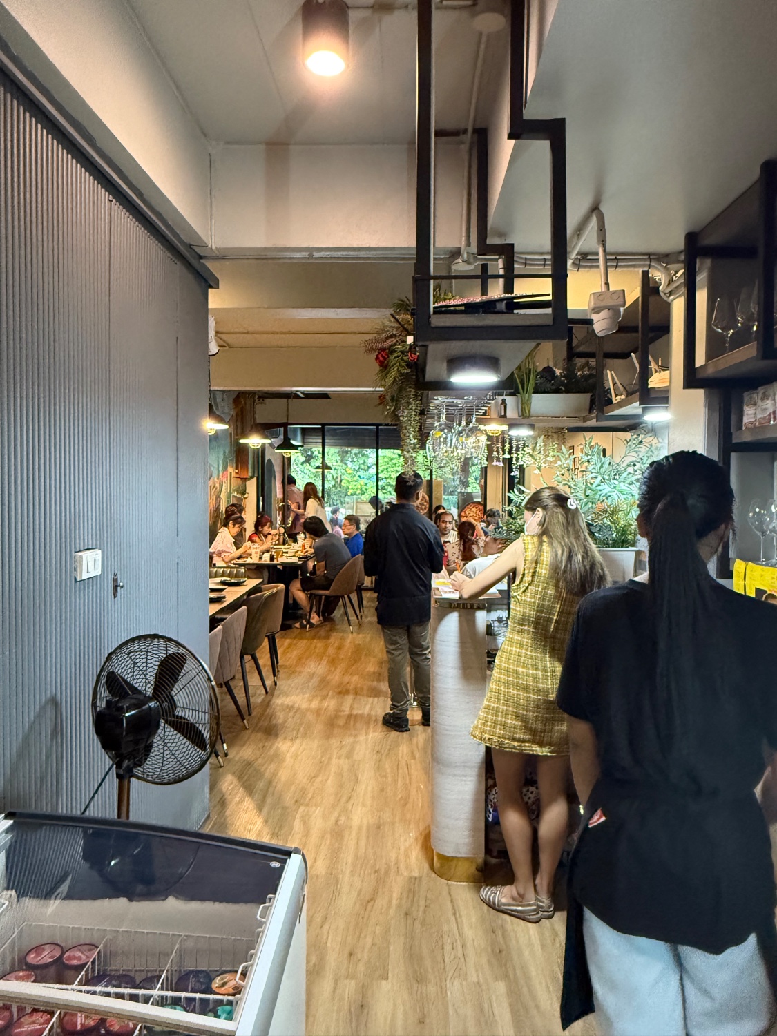 ข้างในร้านเป๋นสองชั้น ชั่นล่างประมาณเกือบ 10โต๊ะชั้นบน4-5 โต๊ะ