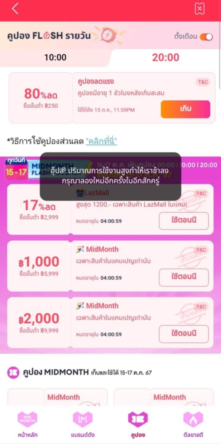 #มีใครเคยแย่งคูปองจากลาซาด้า ช่วง 10.00 น. และช่วง 20.00 น. ไม่เคยได้รับคูปองเลยสักวัน ตลอด 10 ปี ที่ผ่านมาบ้าง