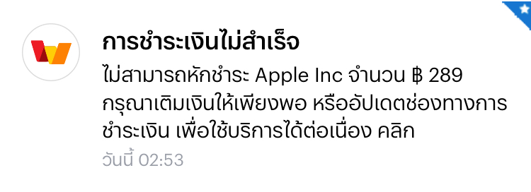 โดนหักเงินจาก Truemoney wallet แจ้ง ว่ายอดจาก App Store & Apple music