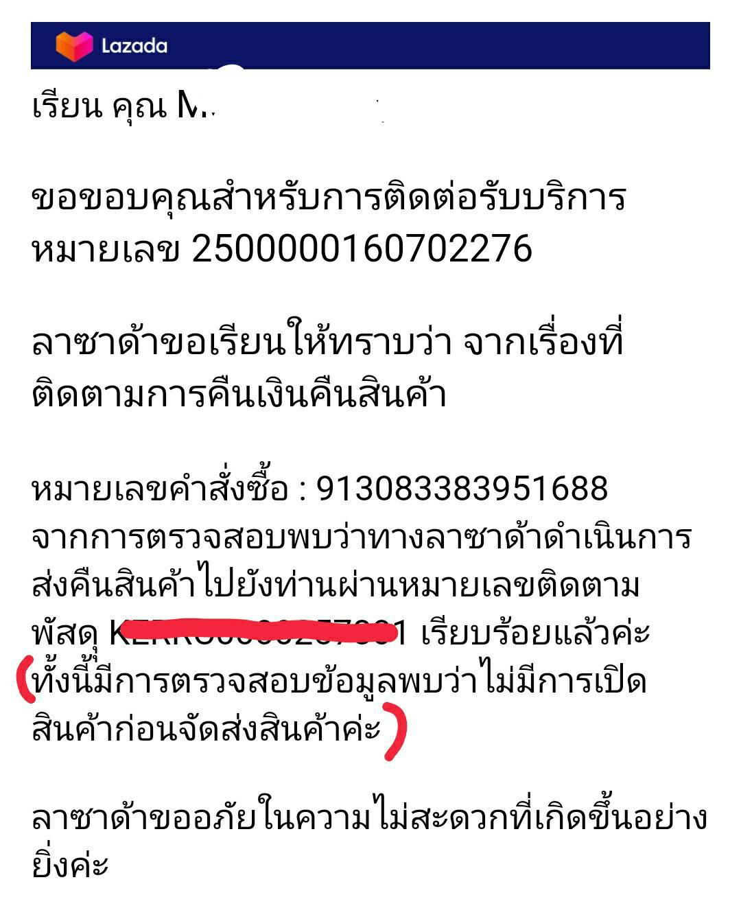 ผมก็ได้ปฎิเสธรับสินค้าตามคำแนะของพนักงานลาซาด้า สินค้าก็ถูกตีกลับไปยังคลังลาซาด้าอีกครั้ง