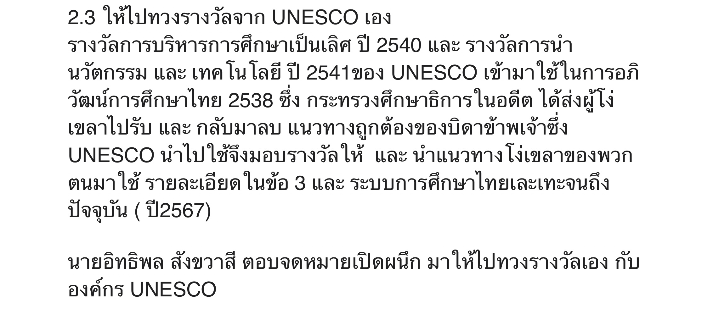ผลงานด้านการศึกษา ของนักการเมือง แต่ถูกปล้นรางวัล UNESCO ด้านการบริหารการศึกษา ในปี 2540-2541