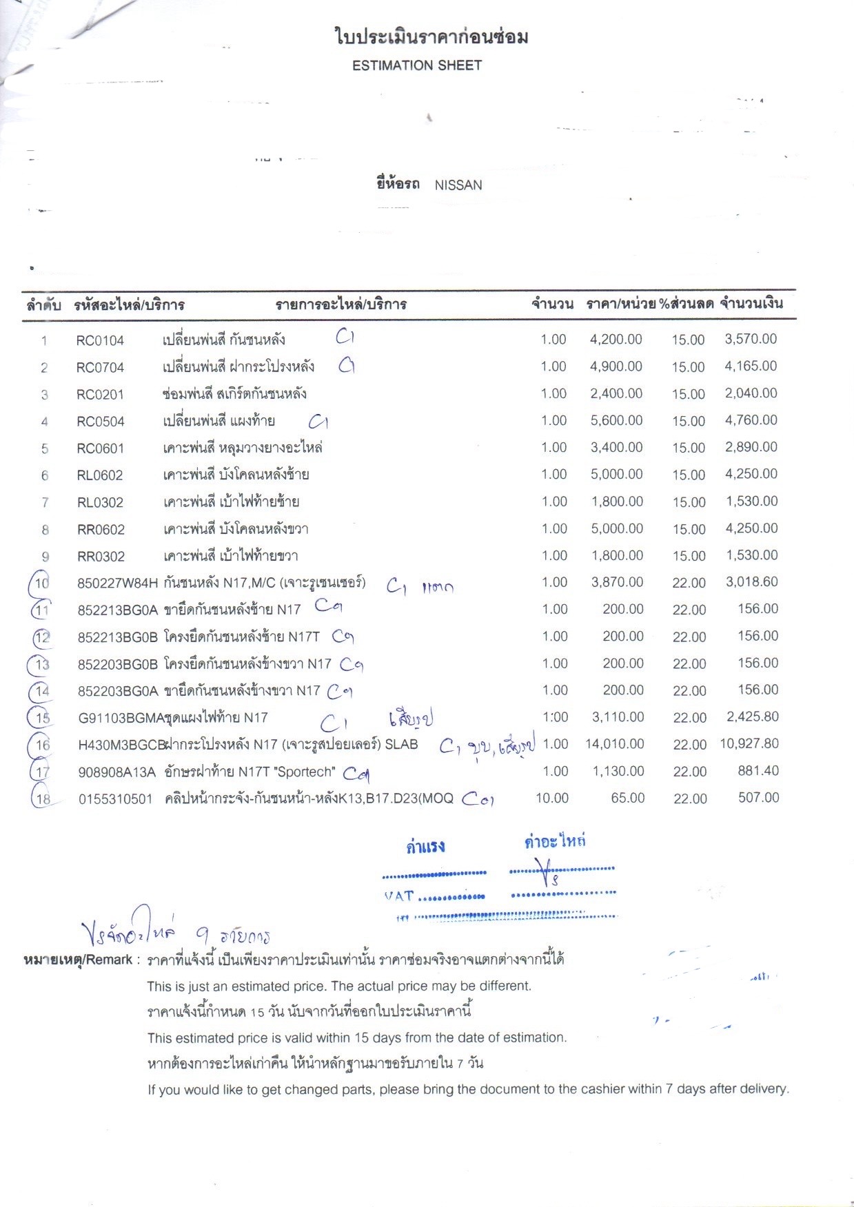 ช่วยพิจารณาขอความเห็นเรื่องราคาใบประเมินซ่อมแซมรถหน่อยค่ะ