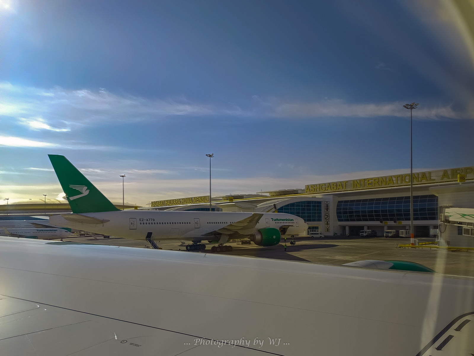 เราเดินทางด้วยสายการบินแห่งชาติเติร์กเมนิสถาน ต้องไปต่อเครื่องที่อาซกาบัต เมืองหลวงของเติร์กเมนิสถาน
