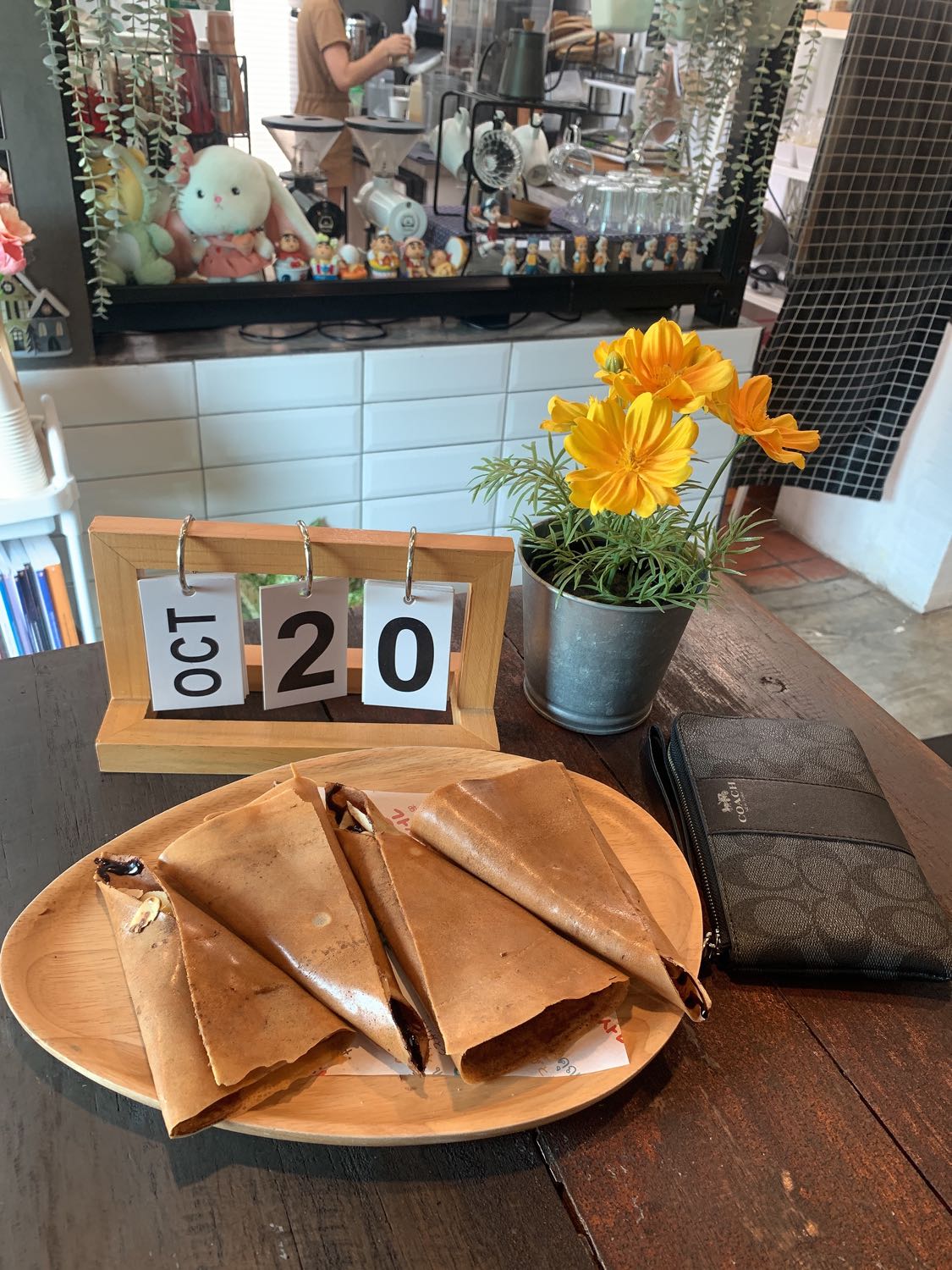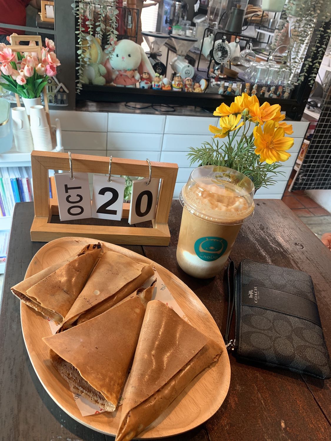 ร้าน : กาแฟพันธุ์ไทย เครื่องดื่ม : คุกกี้แอนด์ครีมปั่น เบเกอรี่ : ขนมปังเกลือ ใส้ถั่วเค็ม