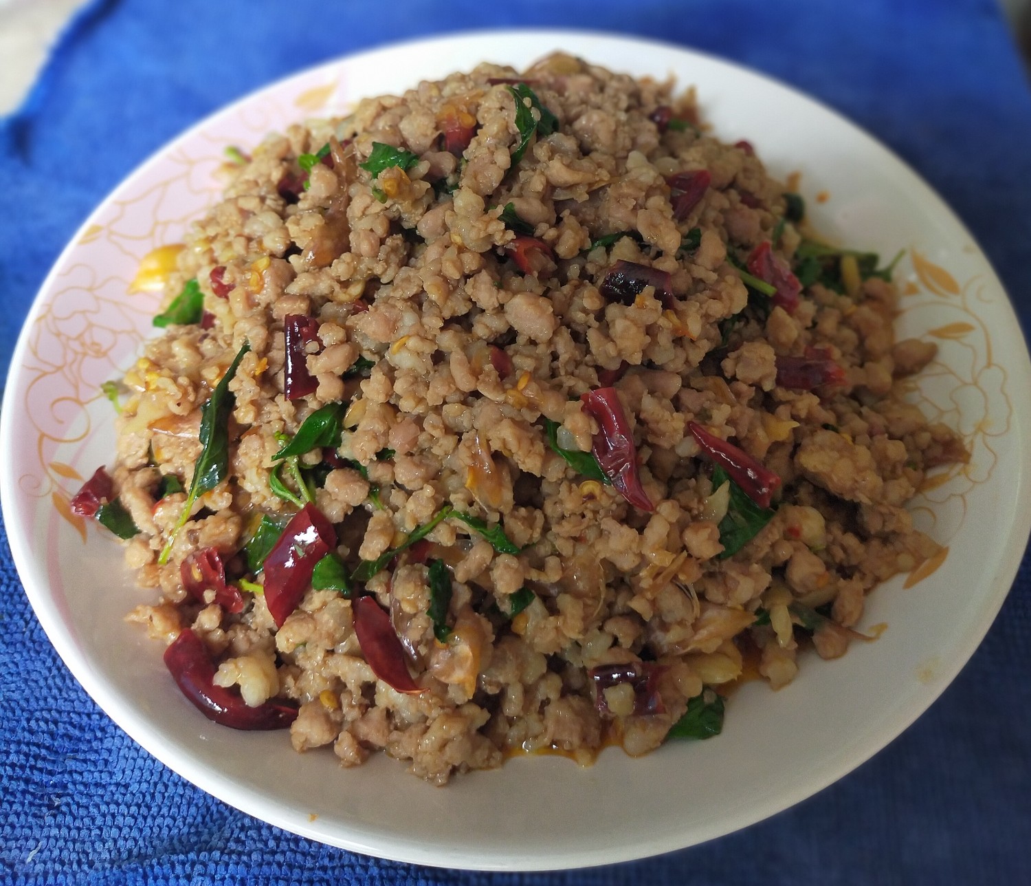 **ความอร่อยที่ จขกท ชอบมากคือจะชอบผัดกระเพราแบบแห้ง จึงจะรวนหมูสับให้คายน้ำออกและแห้งประมาณหนึ่งก่อนถ้าน้ำหมูออกมาเยอะก็เทออกเลยส่วนหนึ่ง ค่อยผัดรวมกับเครื่องผัดค่ะ ผัดแป๊บเดียวให้เครื่องหอมฉุนออกมาแล้วปรุงรสตามที่ชอบตบท้ายด้วยใบกะเพรา