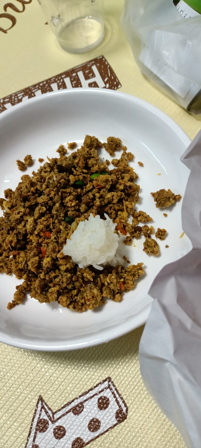 วันนี้กินกระเพราหมูสับกล่องแดง เซเว่น รสชาติ ใช้ได้ แต่โดยปกติ จะไม่ค่อยสั่งกระเพราหมูสับกิน ไม่ใช่เพราะอะไรหรอก มันแพง ราคาเท่ากัน แต่ให้น้อยกว่ากระเพราไก่ อันนี้ไม่มีไข่ดาวด้วย สั่งไข่ต้มมากินด้วย