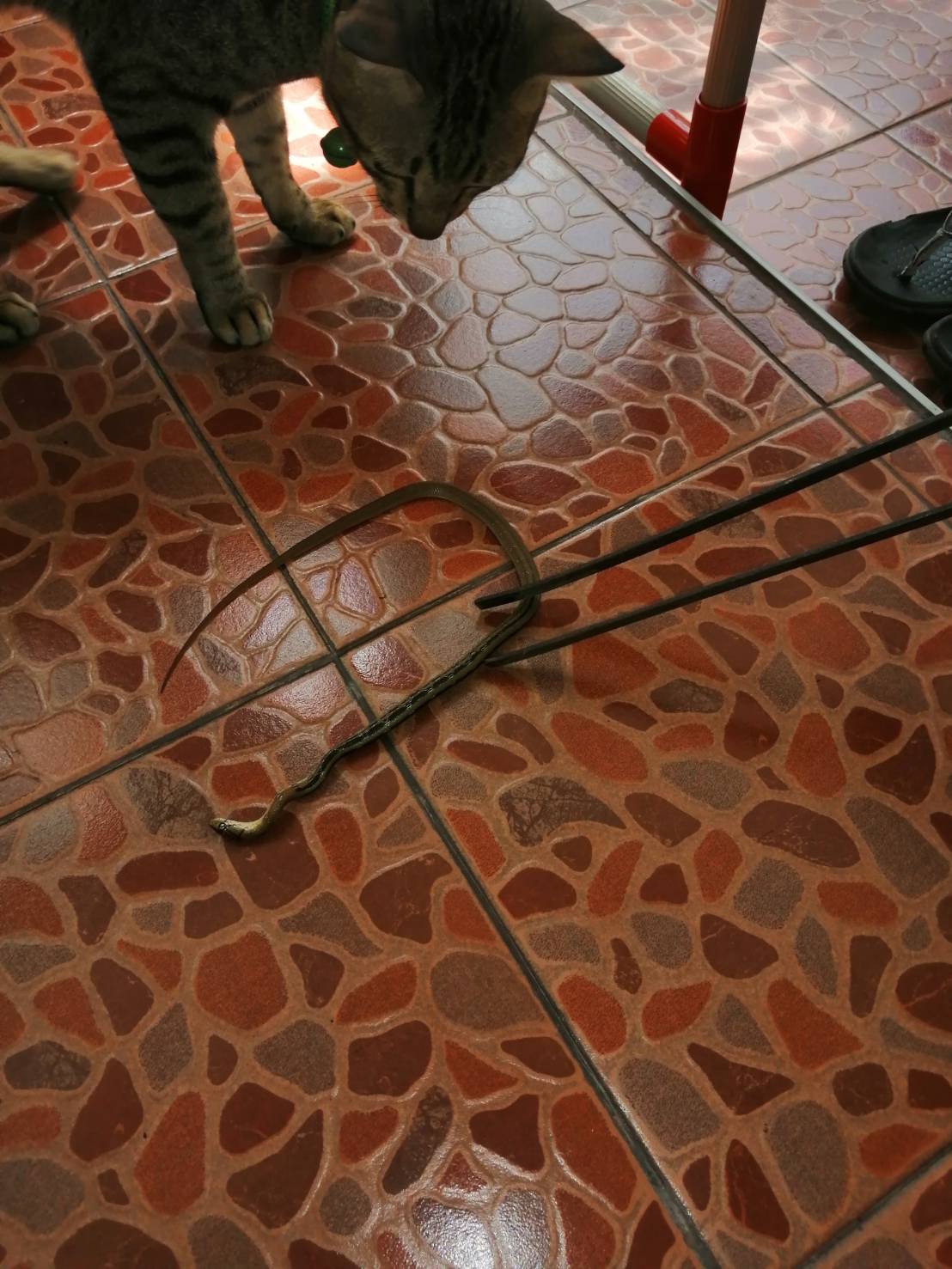 เป็นงูอะไรครับ มีพิษหรือเปล่า น้องแมวคาบมา เเต่ผมจับมันไปปล่อยในป่าเเล้ว