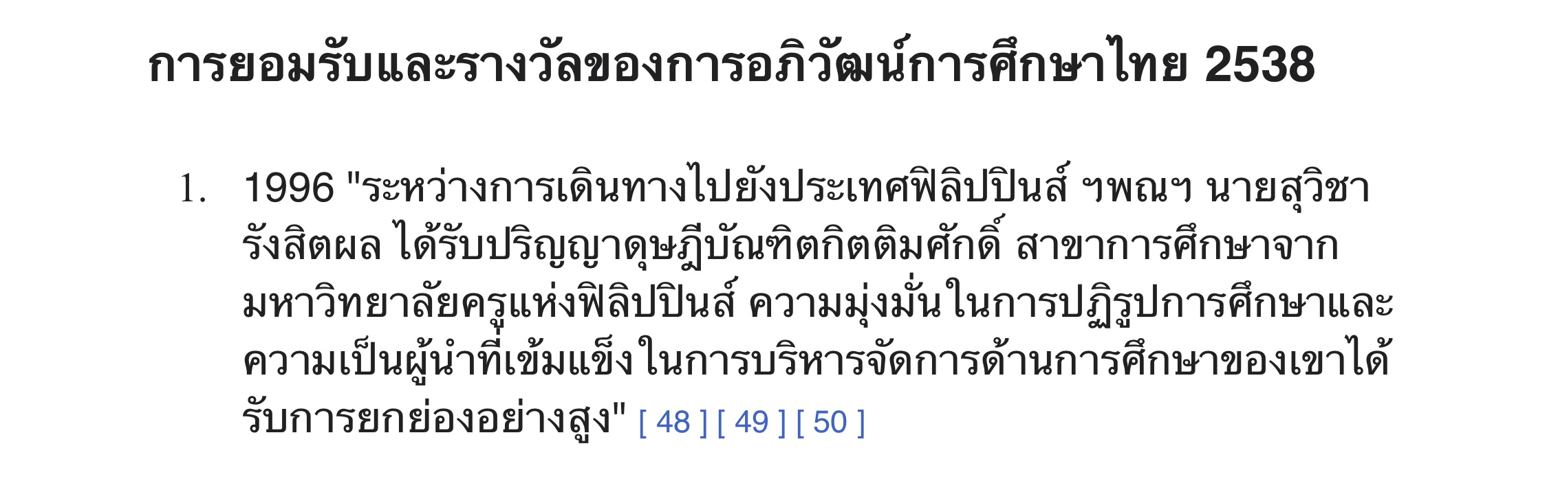 รางวัลการอภิวัฒน์การศึกษาไทย 2538 ของคุณพ่อสุขวิช รังสิตพล ถูกลบจากประวัติ ในวิกิพิเดีย และนำเข้าข้อมูลเท็จแทน