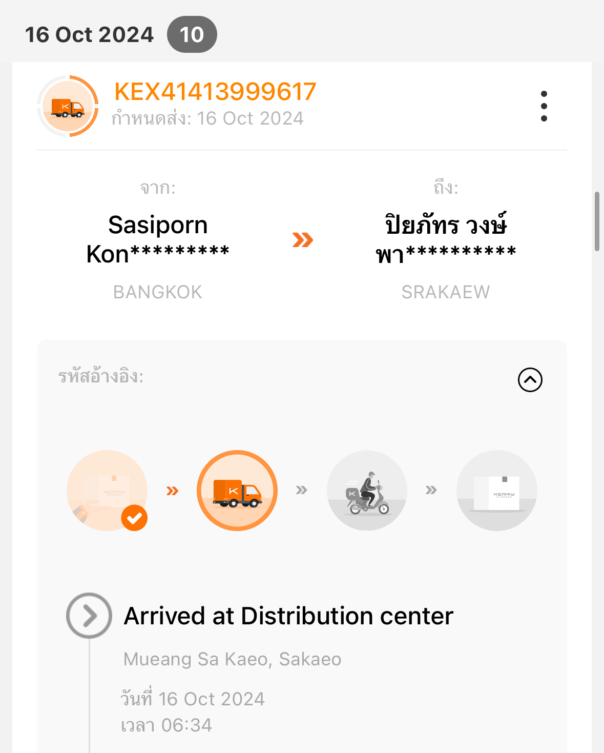 สถานะสินค้า KERRY ค้างอยู่ที่ศูนย์กระจายสินค้าเกือบ1อาทิตย์?????