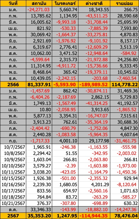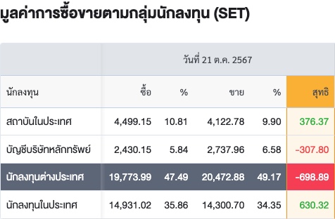 Sinthorn Summary 21/10/2567 : ต่างชาติขายสุทธิ -698.89 ลบ.
