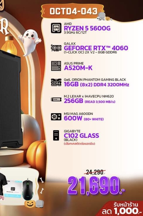 OCTD4-043 AMD RYZEN 5 5600G 3.9GHz 6C/12T / A520M / RTX 4060 8GB / 16GB DDR4 3200MHz / M.2 256GB / 600W (80+WHITE)