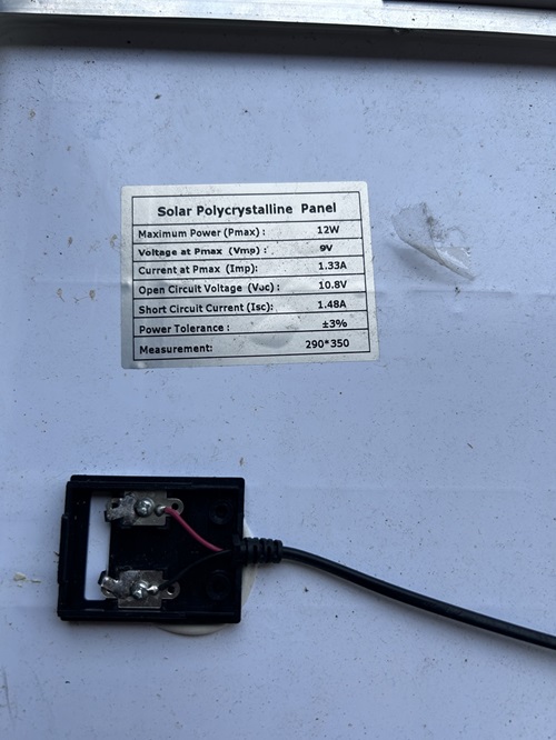 แผ่นโซล่าเซลมีแรงดัน 6 โวลท์ และให้กำลังไฟ 12 วัตต์