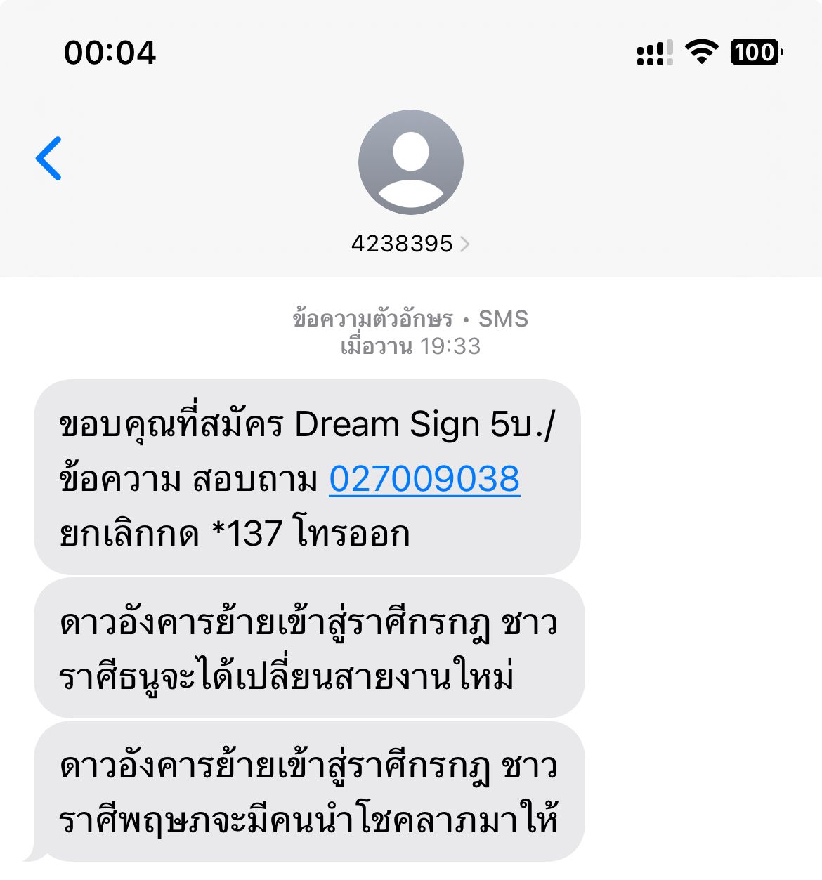 มีข้อความจาก DreamSign ของ True move H อยู่ๆก็มีข้อความส่งมา แบบนี้ เหมือนจะหักเงินเลย
