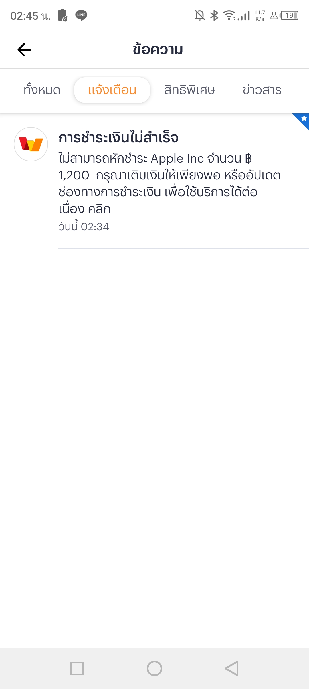 true money มีการแจ้งเตือนว่าการชำระเงินไม่สำเร็จ