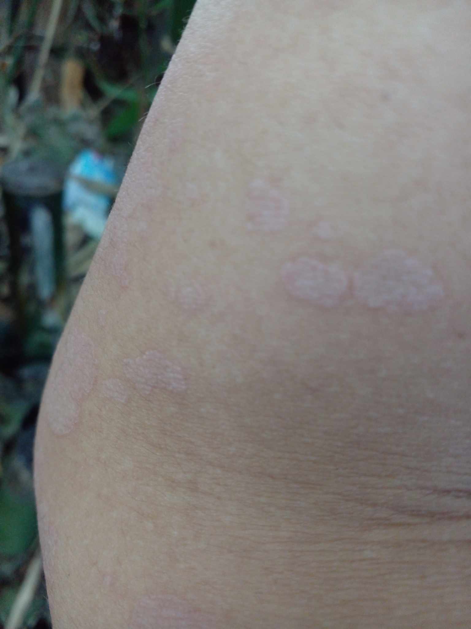 เป็นแบบนี้มาสองอาทิตย์แล้ว ค่ะ อาการคือ เราจะรู้สึกคันมาก แบบยิบๆ หนามๆคัน พอดูตรงจุดที่คันมันจะแดงเห่อแบบนี้ เราไม่ได้เกานะคะ (ไม่มีตุ่มนูนใดๆมันแค่แดงแบบในรูป) พอเห็นแล้วก้อดทนไม่เกา แค่ลูบๆ แล้วมัน