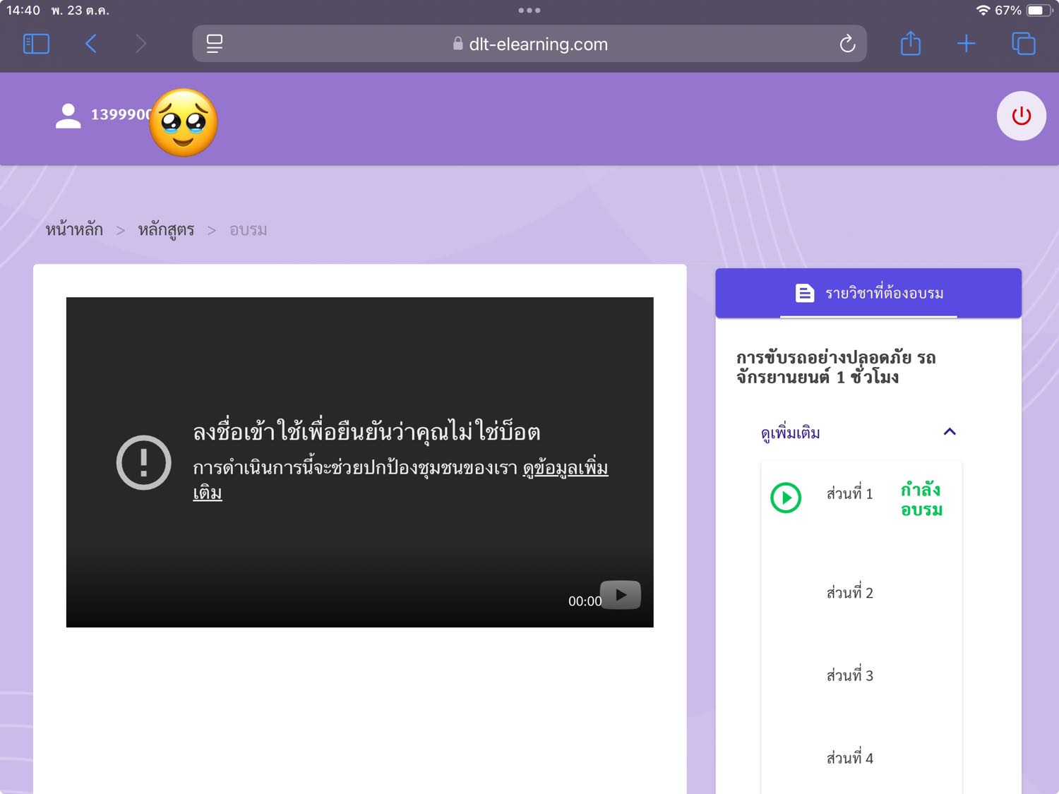 จะอบรมใบขับขี่ผ่านทางออนไลน์ แต่ดูวิดิโอไม่ได้ครับ