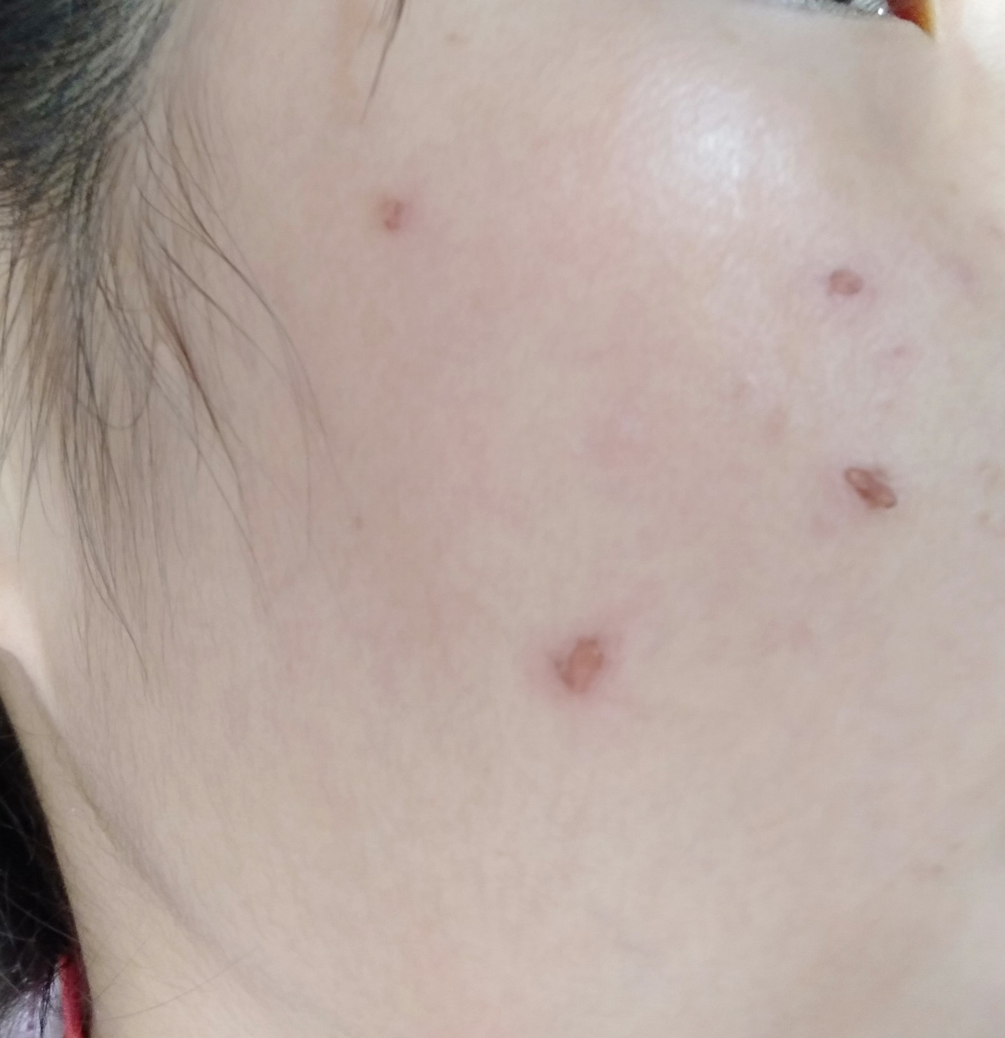แกะสิว เดิมเป็นสิวไม่มีหัวค่ะ แกะไปแกะมาเป็นรูเลย จากนั้นก็ยังไปบีบมันจนหน้าพังเลย เดิมตรงแก้มเคยมีขี้แมงวันด้วย เหมือนจะหลุดไปตอนบีบไปแคะมัน แล้วแผลก็ไม่หายเลยไม่รู้เพราะรากขี้แมงวันยั