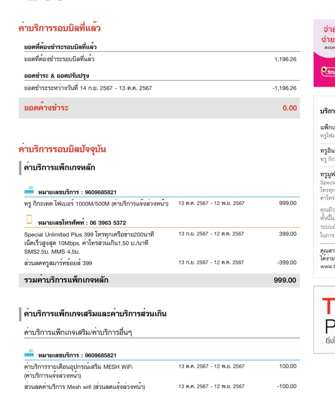 ปกติจ่ายเดือนละ 600 กว่าาบาท 2 เดือนนี้บิลค่าเน็ตขึ้นมา 1,196.26 ติดต่อทรูเพื่อสอบถามก็ติดแต่ AI รบกวนเจ้าหน้าที่ติดต่อกลับทีครับ