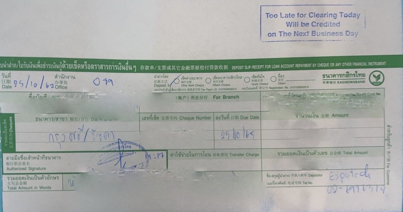 รบกวนสอบถามค่ะพอดีได้รับฝากเช็ดวันที่ 25/10/2567 เวลา 15:17 นาที