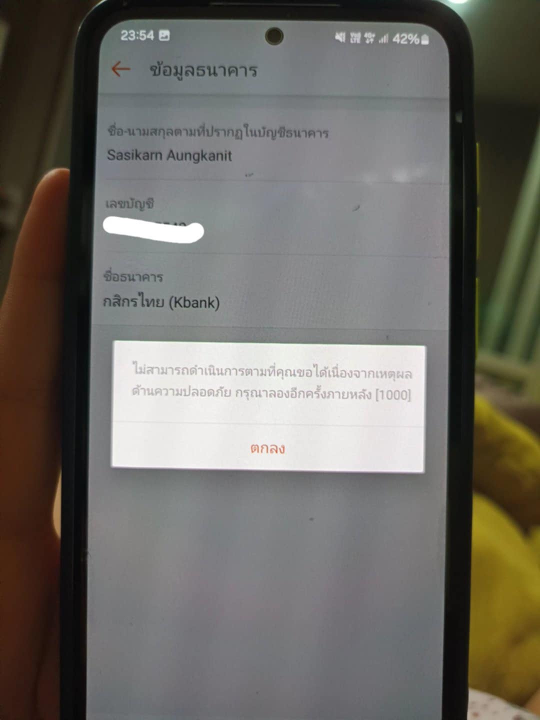 คือว่าเราต้องการเพิ่มบัญชีธนาคารเพื่อรับเงินคืน จากแอปช็อปปี้ แต่ว่าไม่สามมารถเพิ่มบัญชีได้ จะขึ้นแบบนี้ตลอดเลยค่ะ แก้ยังไงบ้างคะ คอลเซ็นเจอร์ก็ติดต่อไม่ได้เลยค่ะ