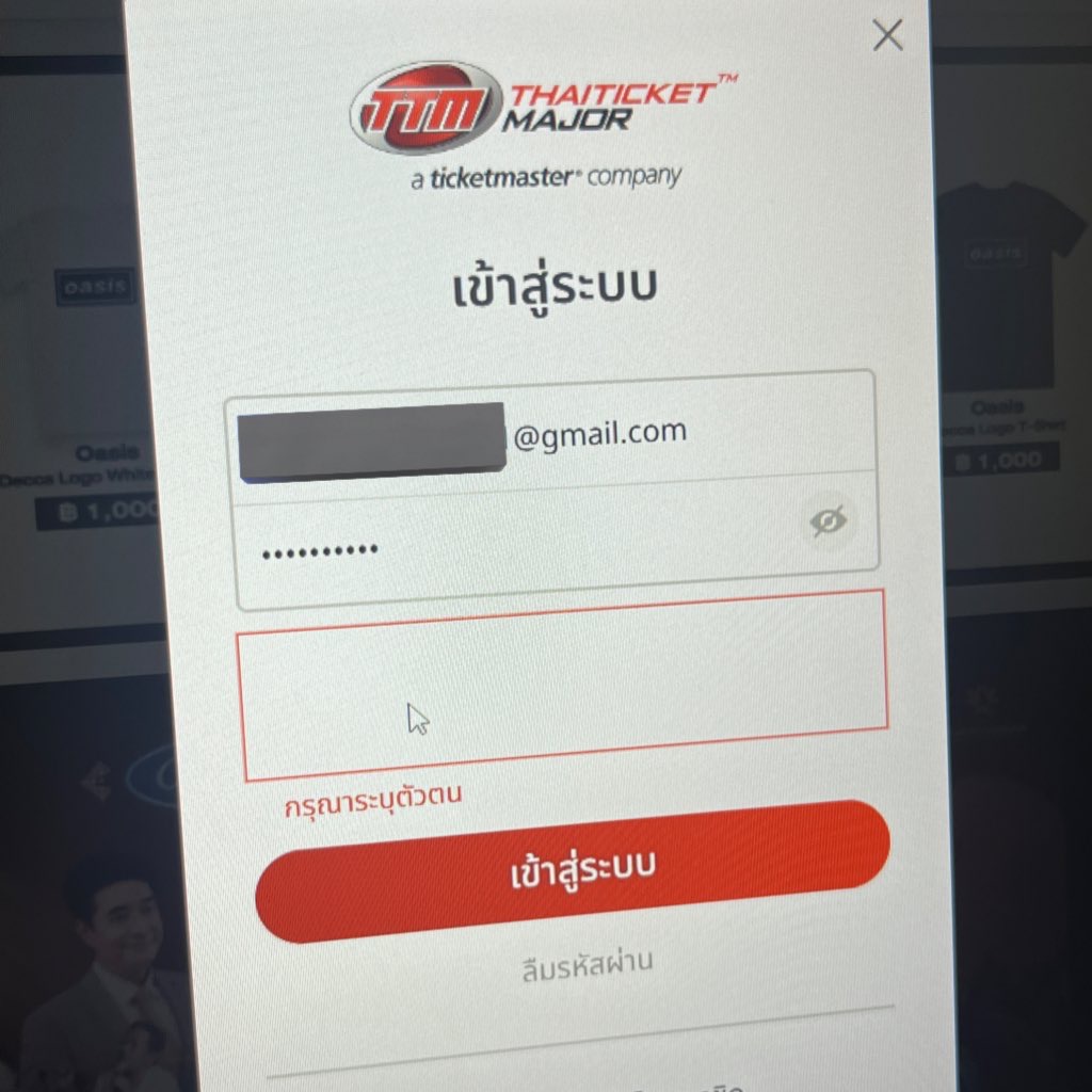 Login thaiticket ไม่ได้เข้า ขึ้นว่ากรุณาระบุตัวตนแต่ใส่ทุกอย่างถูกหมด