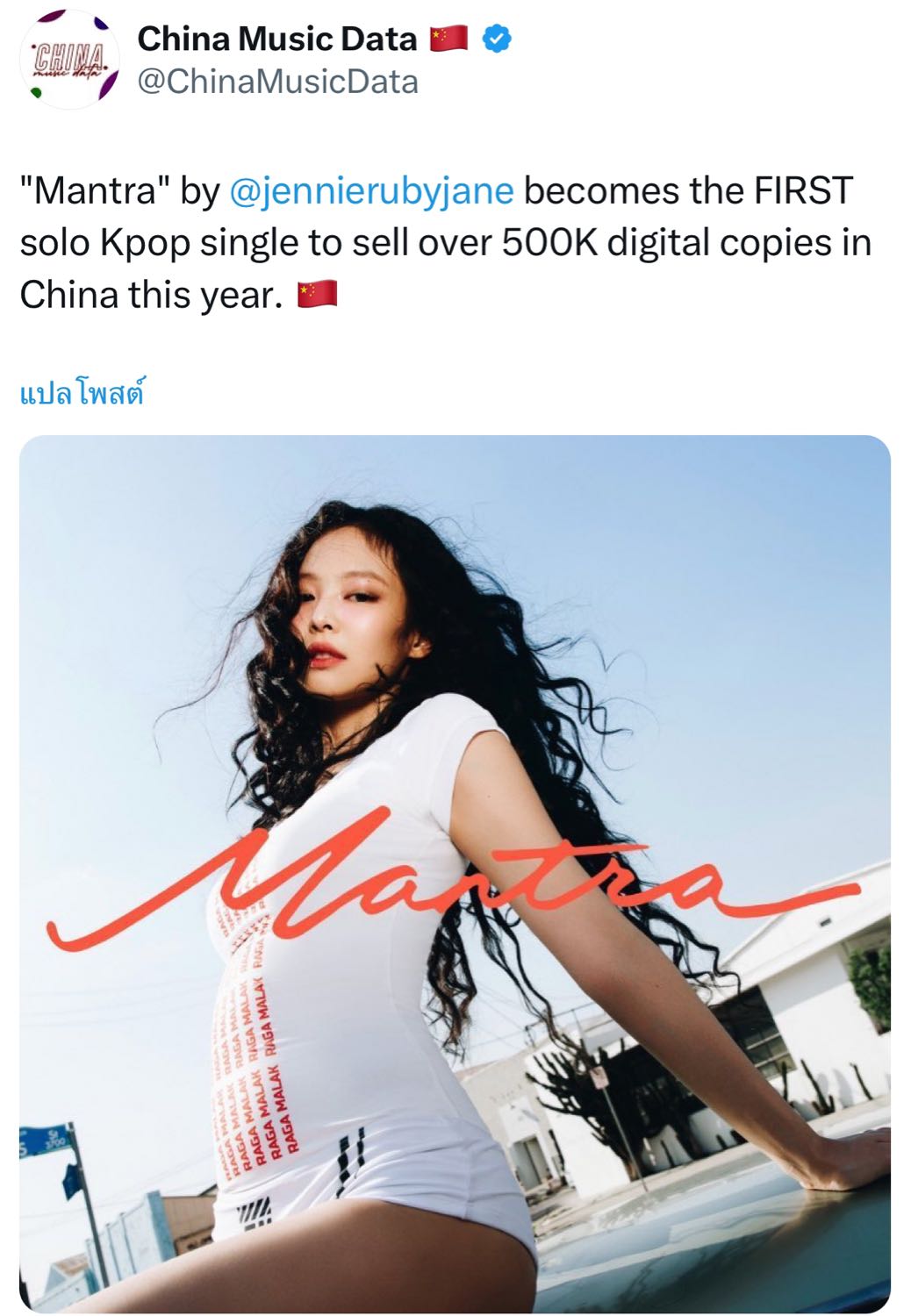 "Mantra"กลายเป็นซิงเกิลเดี่ยวของ Kpop ชุดแรกที่มียอดขายทางดิจิตอลเกิน 500,000 ชุดในประเทศจีนในปีนี้ 🇨🇳
