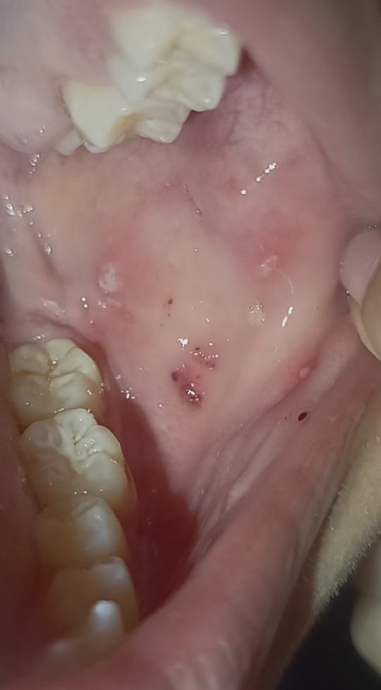 มีคราบสีขาวบริเวณฟันล่างสุดท้ายผมใช้ผ้าเช็ดเเล้วเป็นรอยเเดงเเบบนี้ผิดปกติไหมครับมีใครเป็นเเบบนี้บ้างอยากรุ้ว่าเกิดจากอะไ