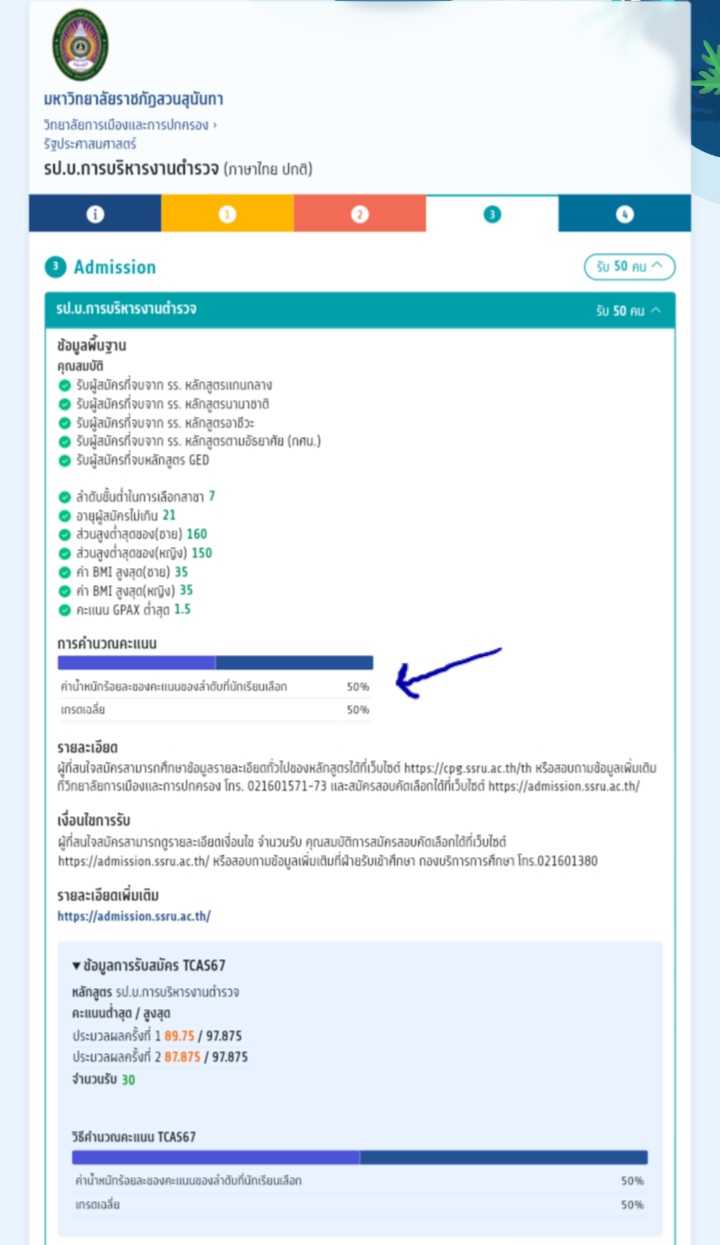 ม.สวนสุนันทา คะแนนรอบที่3ค่าน้ำหนักร้อยละของคะแนนของลำดับที่นักเรียนเลือก 50% คืออะไรคะ