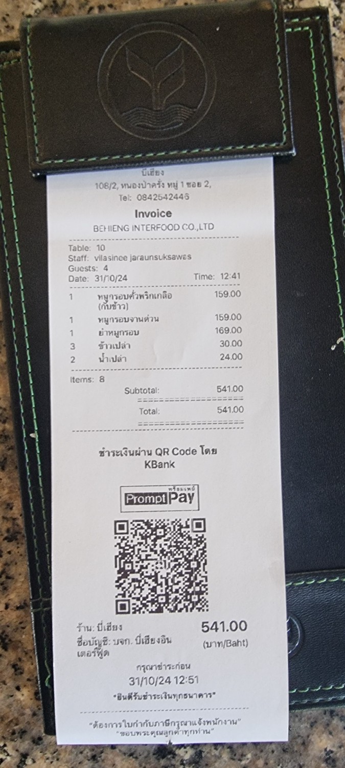 สิริรวมจ่ายไป 541 บาท ก็ OK ครับ แต่ทำไมวันนี้ หมูกรอบเหนียวไปหน่อย 😄😁😅
