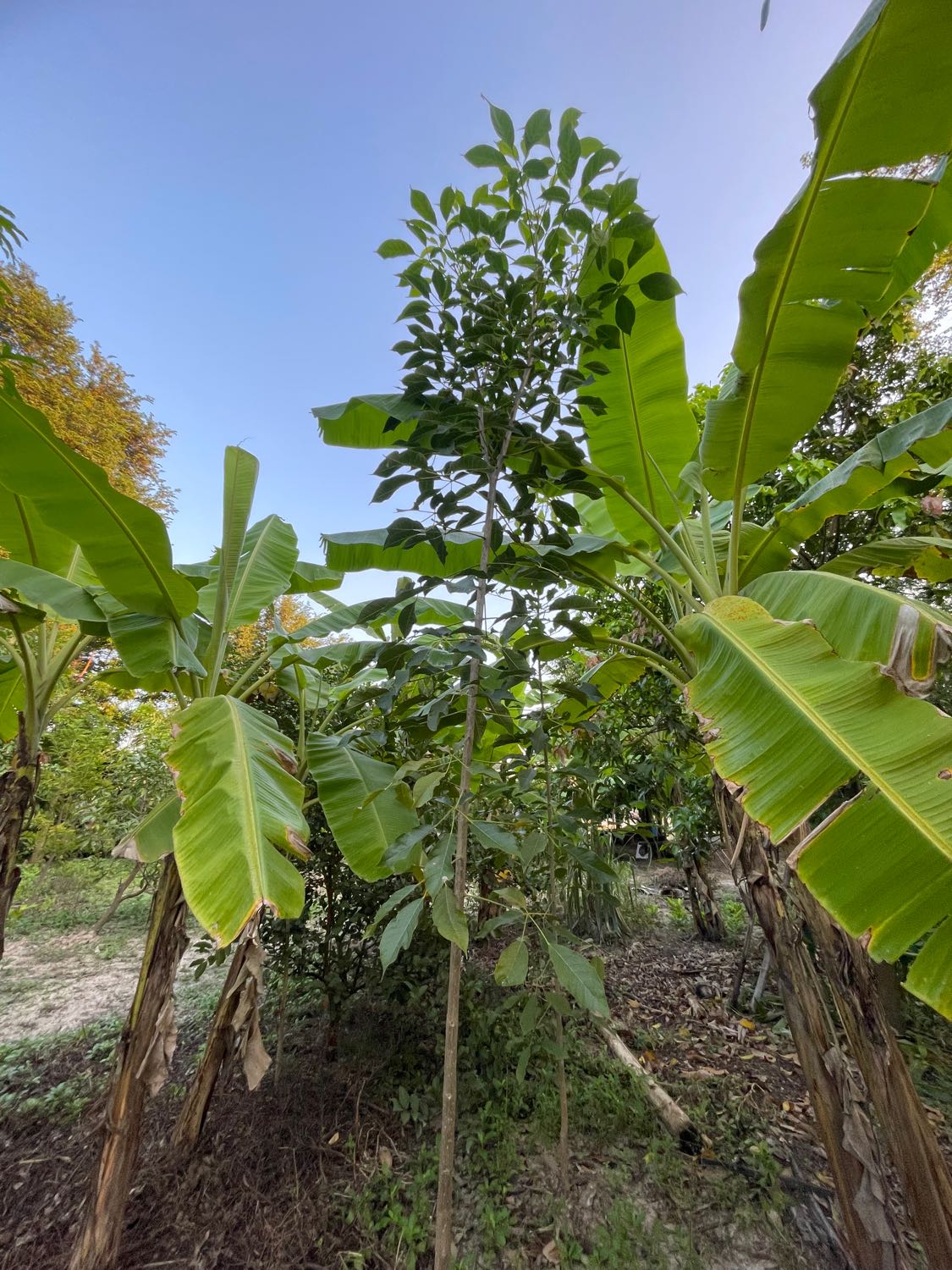 ปลูกพืช 9 ทิศ ใน 1 หลุม ไล่แมลง ไม่ต้องให้น้ำให้ปุ๋ยบ่อย ตรงกลาง ปลูกพืชพี่เลี้ยง เช่น กล้วย 1-2 ต้น ให้ความชุ่มชื้น กับไม