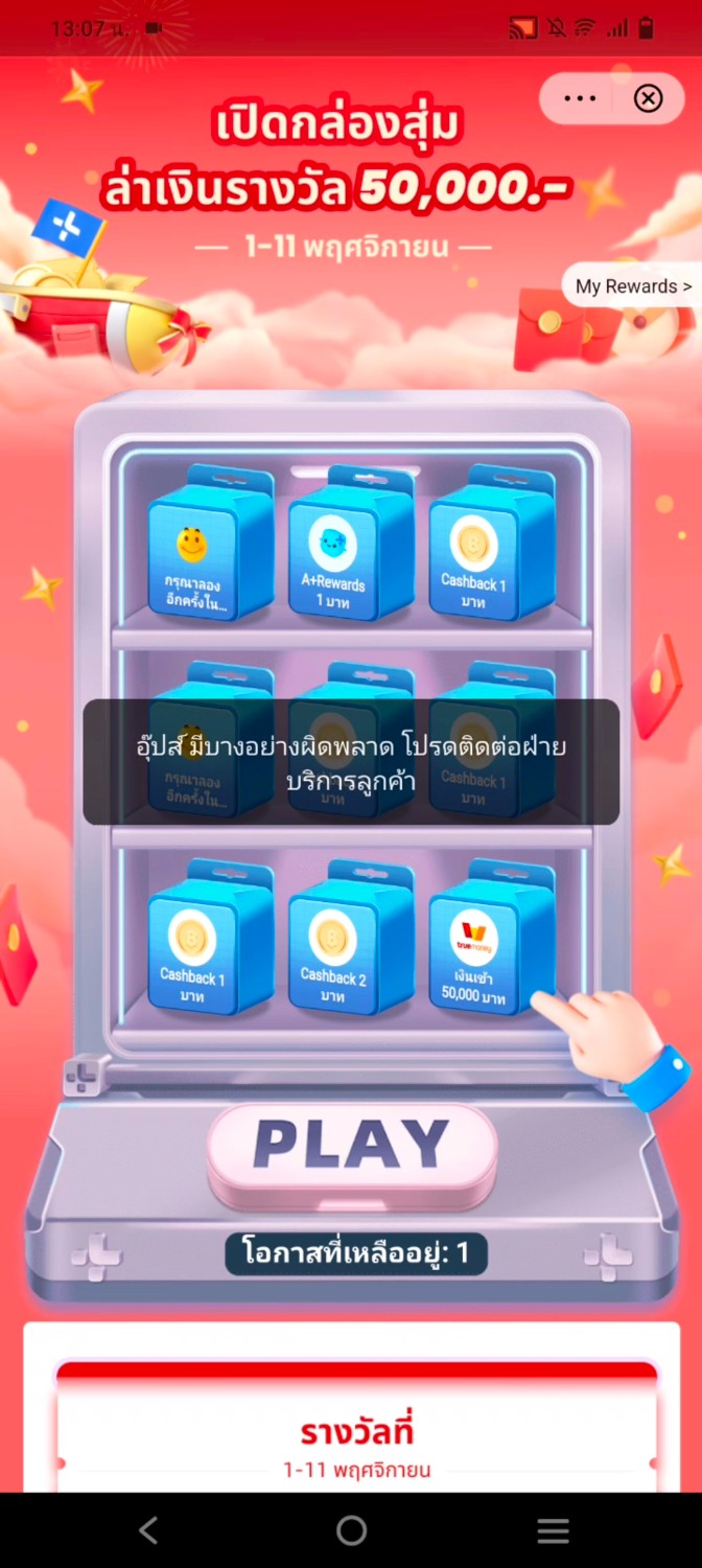 กดเล่นกล่องสุ่มในทรูวอลเลทได้รางวัลใหญ่ 50,000 แต่เด้งออก?