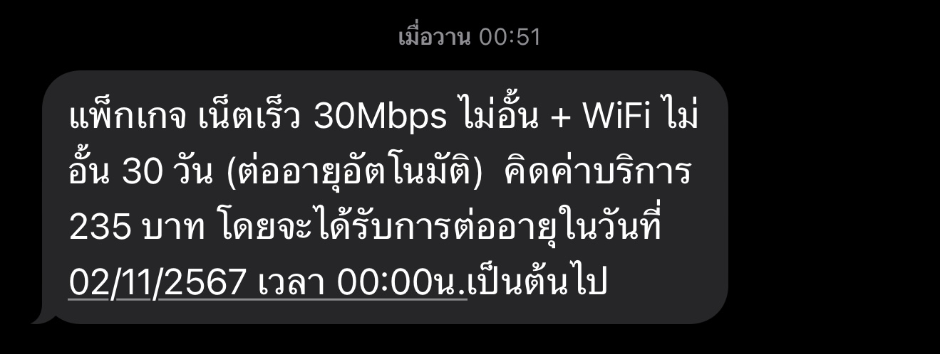ต้องการเปลี่ยนมาใช้โปรเน็ตทรูเดิมเนื่องจากมีข้อความจากทรูส่งมาว่าโปรเน็ตเดิมจะหมดเขตการใช้งาน ให้ติดต่อกลับเจ้าหน้าที่ พอติดต่อกลับไปเจ้าหน้าที่เสนอโปรที่แพงขึ้นกว่าเดิม แต่เน็ตน้อยกว่าเดิม พอสอบถามว่ารวมภาษีมูลค่าเพิ่มหรทอยัง เจ้าหน้าที่แจ้งว่ารวมแล้ว ในราคา 349 แต่ความเป็นจริงในระบบขึ้น 400 หากใช้เกินต้องเสียเพิ่มไปอีก โปรเน็ตที่เจ้าหน้าที่เสนอ คือ Special Plus 349, Net Fix 20Mbps, Voice 15m/call แล้วเปลี่ยนเราเป็นรายเดือนโดยที่ไม่แจ้งเราก่อน แต่พอมาดูข้อความเน็ตเดิมยังสามารถต่ออายุได้อีก ยังสามารถใช้ต่อได้อยู่