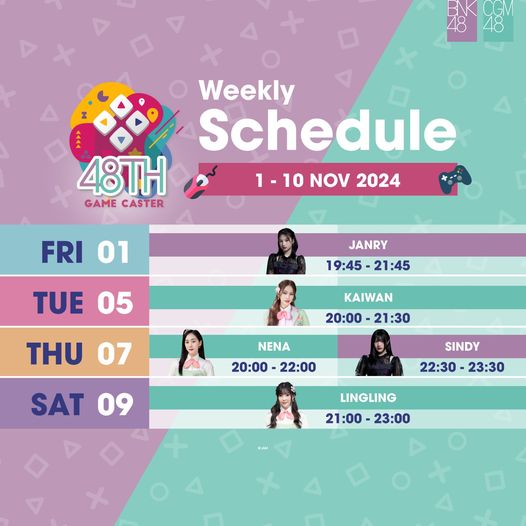 BNK48 & CGM48 Game Caster Weekly Schedule 16-24 NOV 2024.