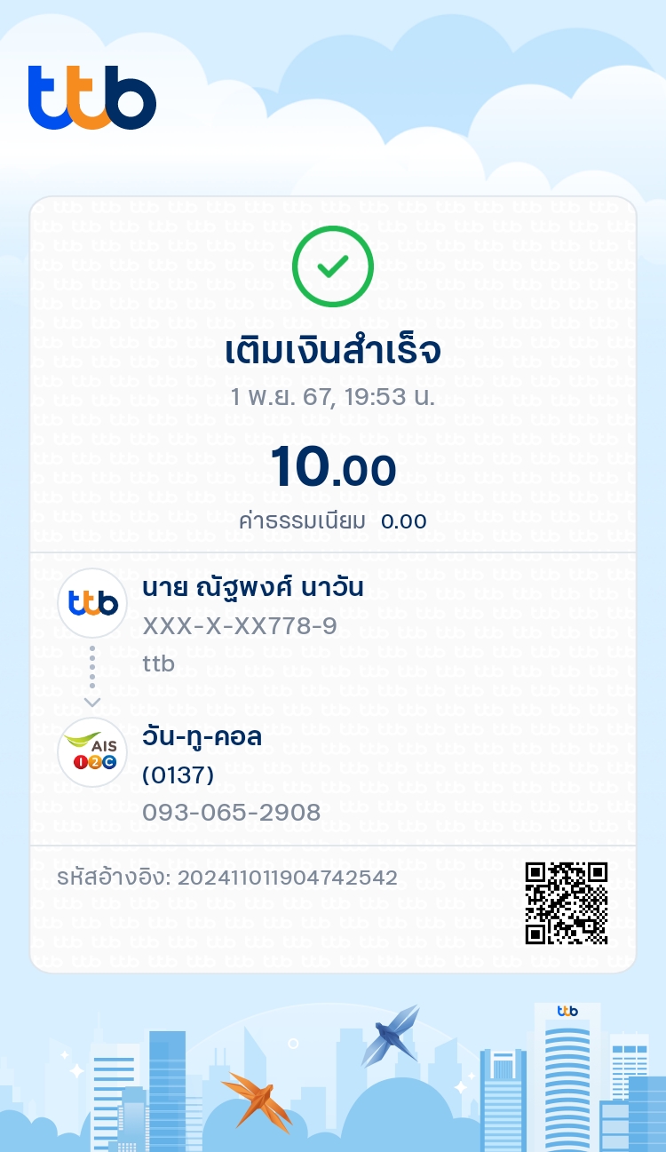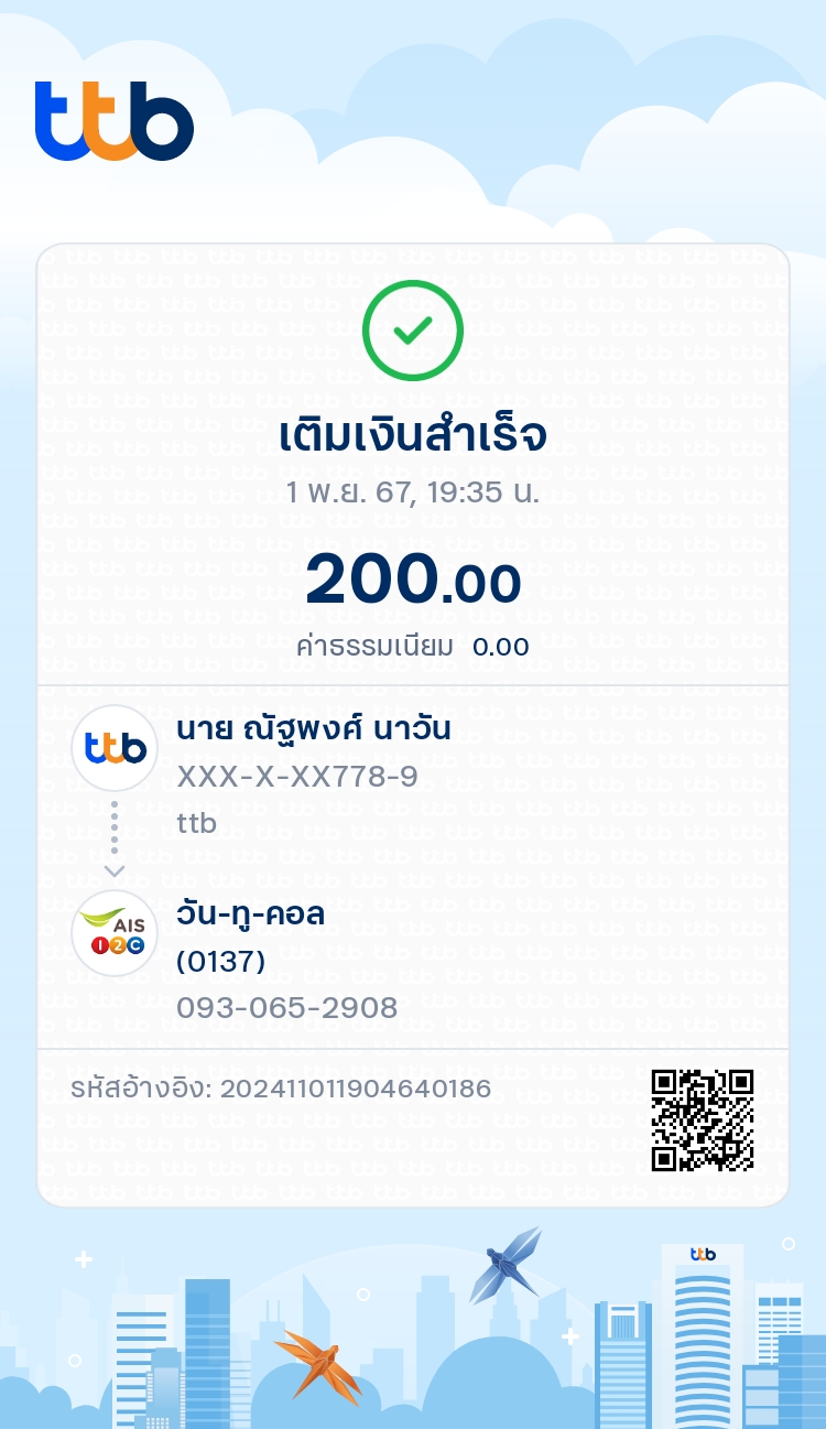 เติมเงิน TMB เข้าโทรศัพท์แล้วเงินไม่เข้า