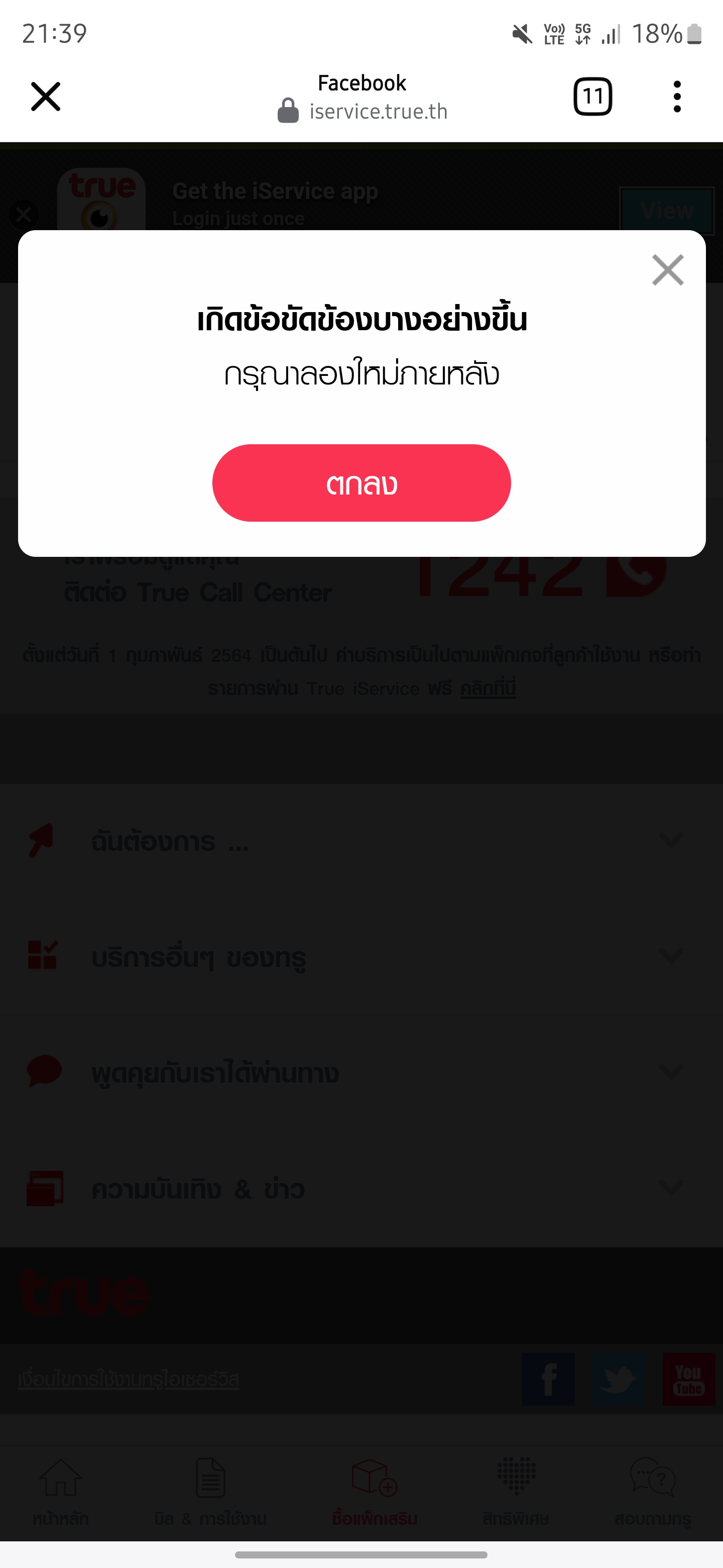ซื้อแพคเกจ โรมมิ่งของ trueiservice ไม่ได้ครับ เหลือขั้นตอนสุดท้าย บอกขัดข้อง