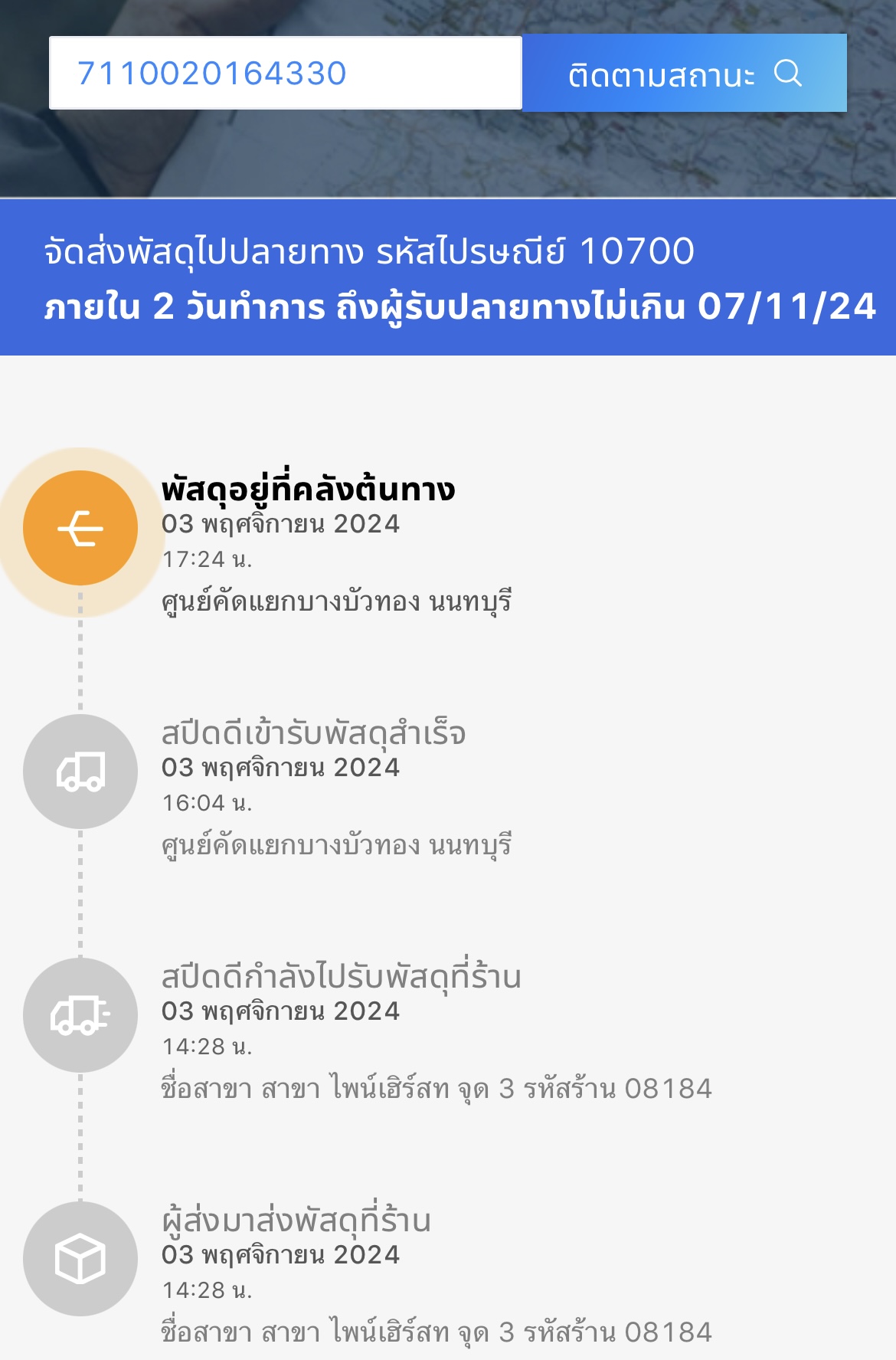 ส่งของแต่ตั้งแต่วันที่ 3 พึ่งถึงวันนี้
