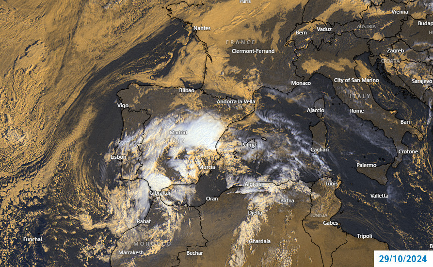 กลุ่มเมฆคิวมูโลนิมบัสหรือพายุฝนฟ้าคะนองที่หนาแน่นมากๆ ที่ปกคลุมสเปน ทำฝนตกหนักแช่ถึง 8 ชม.