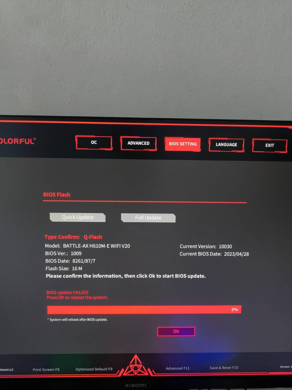 อัพเดทไบออสเมนบอร์ดไม่ได้ BattleAX H610M-E WIFI V20