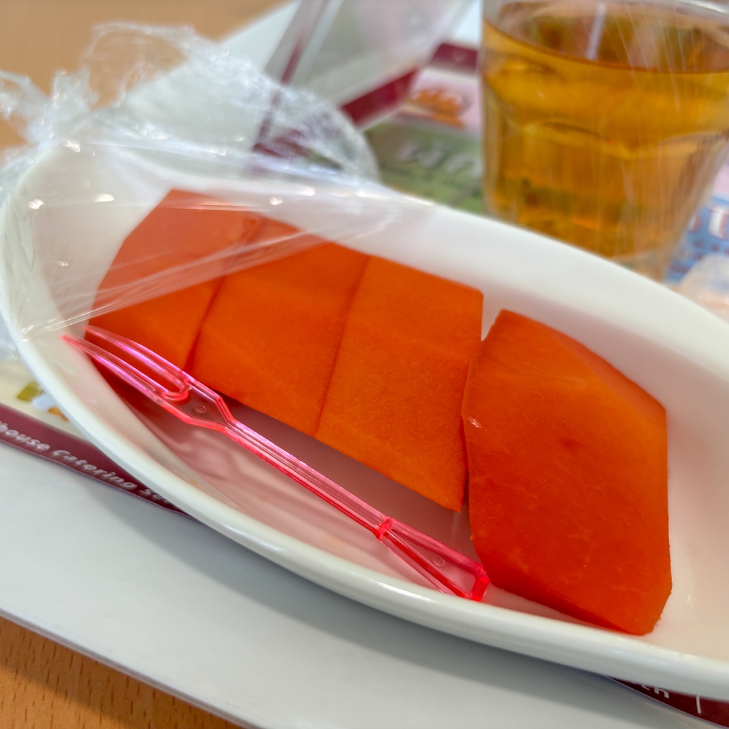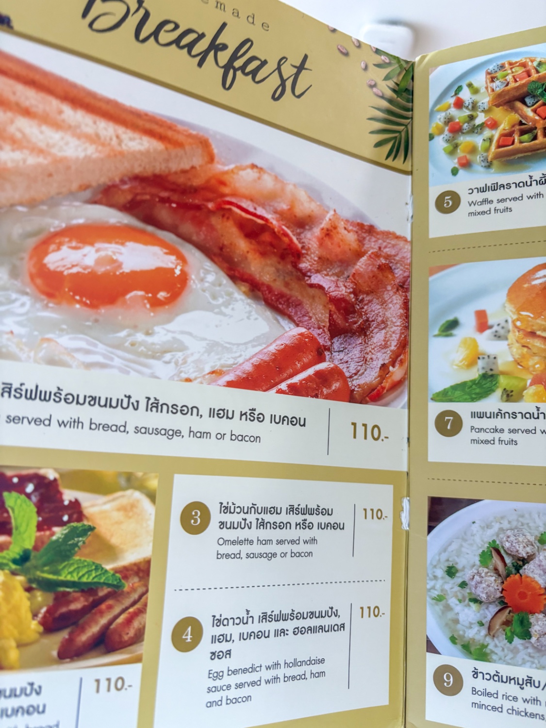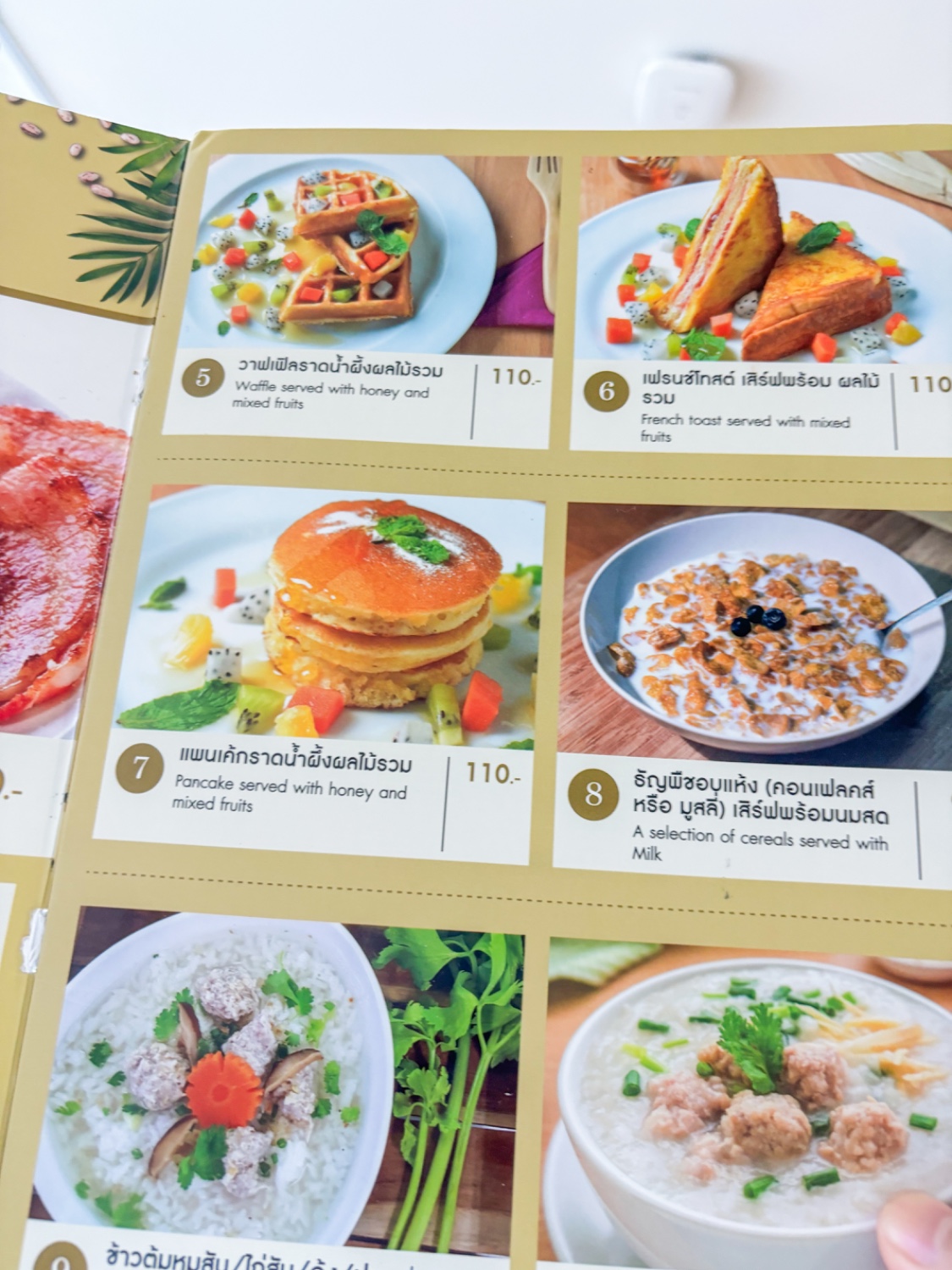 จานแรกจะเป็น เฟรนช์โทสต์กับผลไม้ แต่นักโภชนาการขอเปลี่ยนเป็นขนมปังชุบไข่แทน ให้เหมาะกับผมแทน