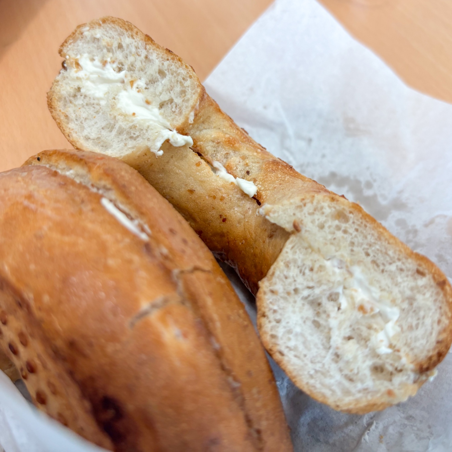 อันนี้อยากกินเอง ซื้อจากข้างล่าง เบเกิ้ลโฮลวีตครีมชีส