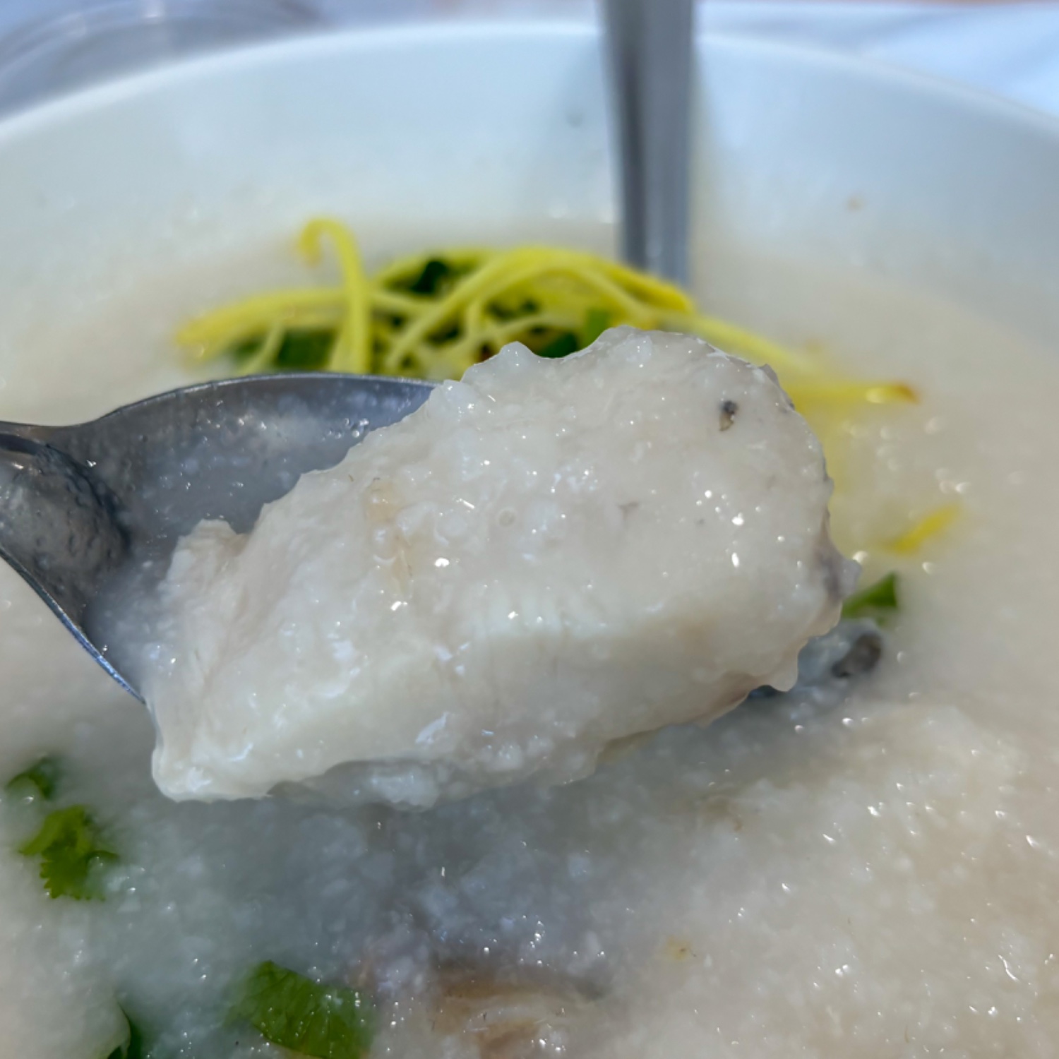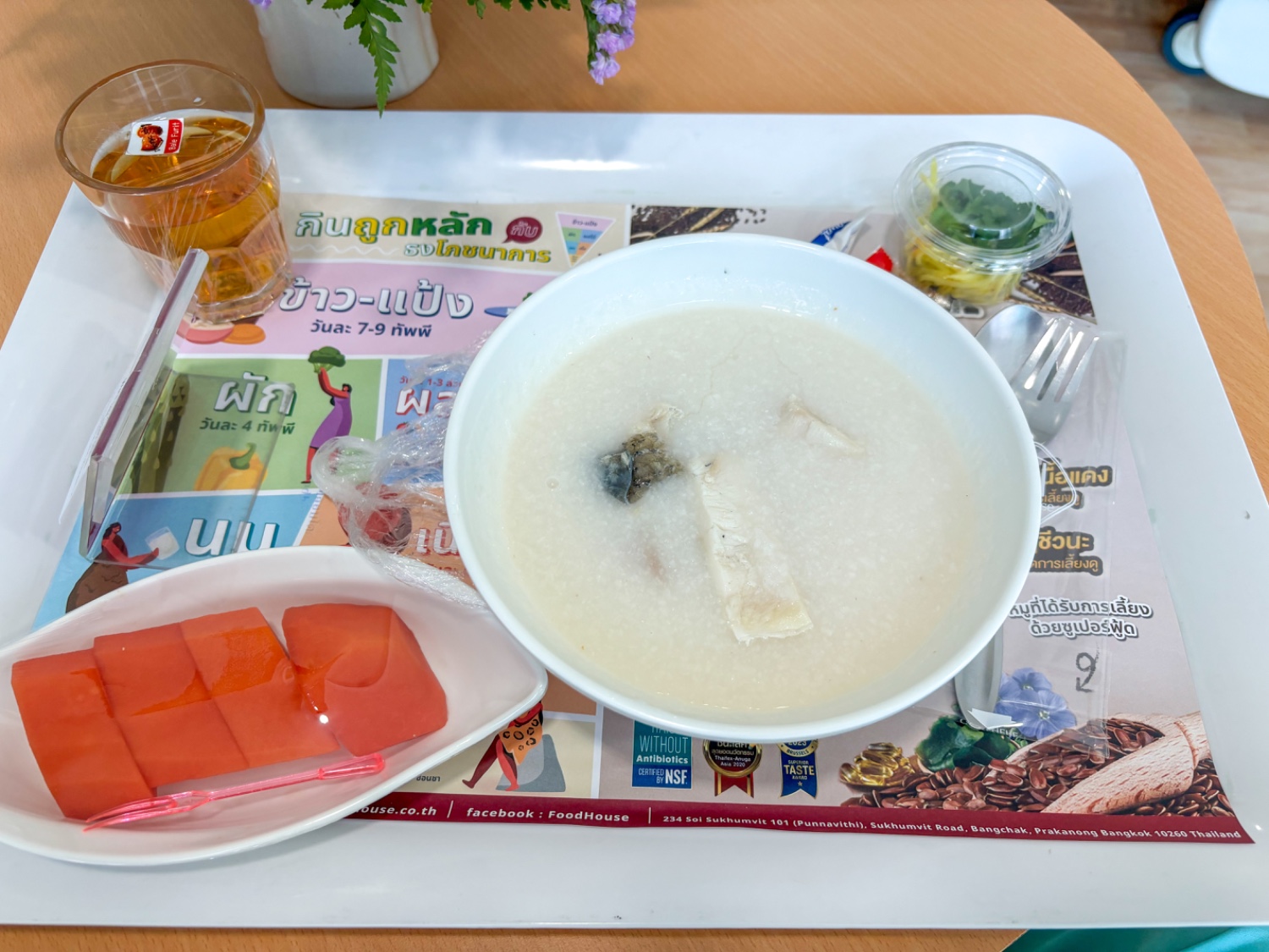 จานนี้โจ๊กปลากะพงกับผลไม้